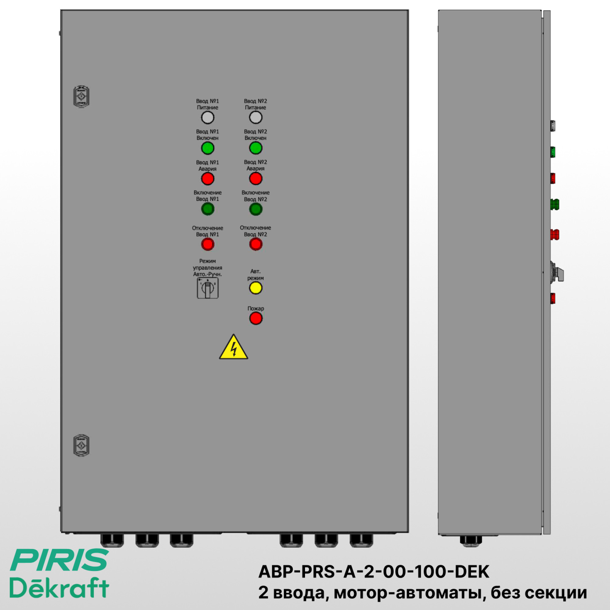 Шкаф автоматического ввода резерва — АВР-PRS-А-2-00-100-DEK навесного исполнения, из цельносварного корпуса в габаритах 1200×800×300 со степенью защиты IP31, предназначен для автоматического переключения питания между основным и резервным вводами для электроприёмников 1-й категории, когда перерыв в электроснабжении недопустим.