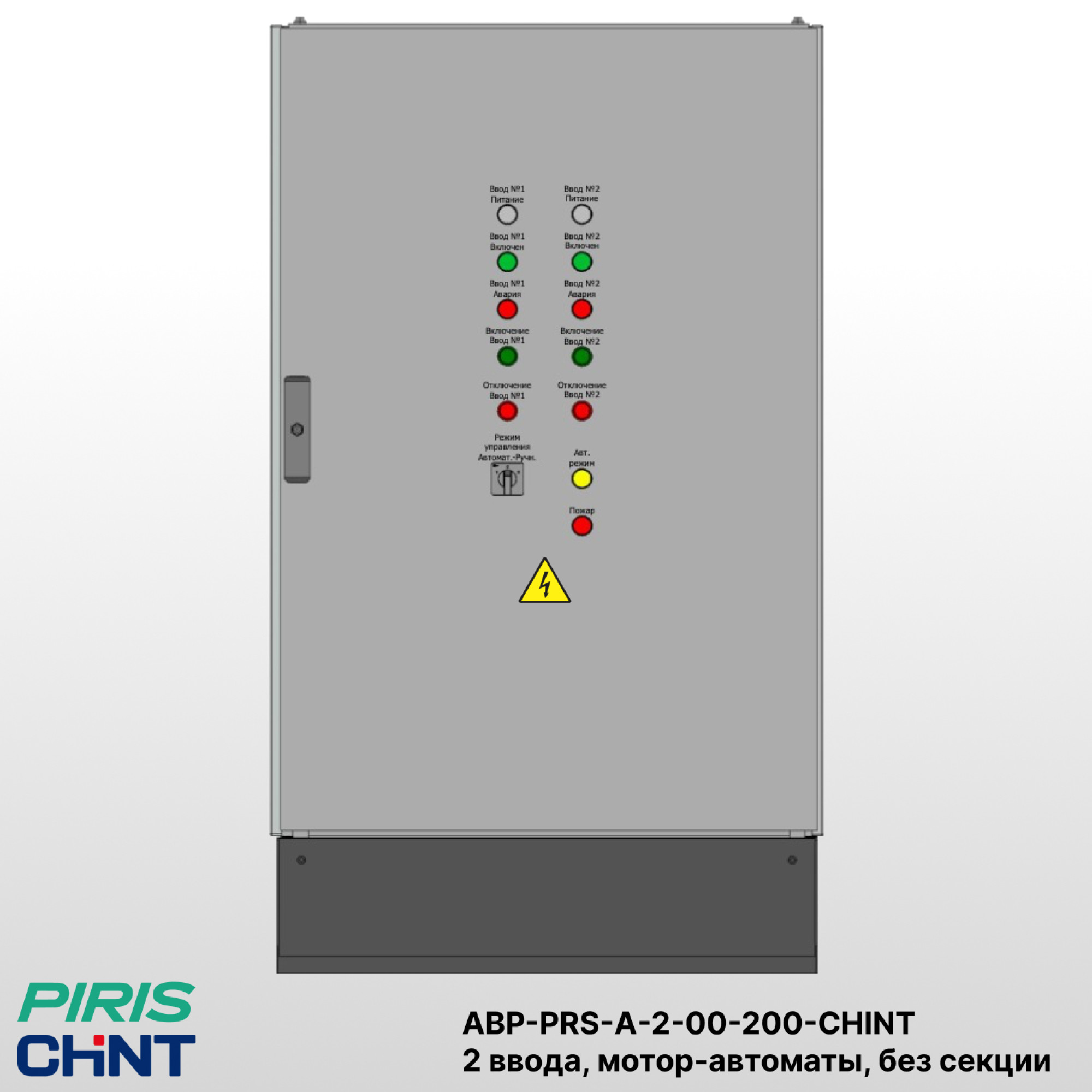 Шкаф автоматического ввода резерва — АВР-PRS-А-2-00-200-CHINT напольного исполнения, из цельносварного корпуса в габаритах 1200×800×500 со степенью защиты IP31, предназначен для автоматического переключения питания между основным и резервным вводами для электроприёмников 1-й категории, когда перерыв в электроснабжении недопустим.