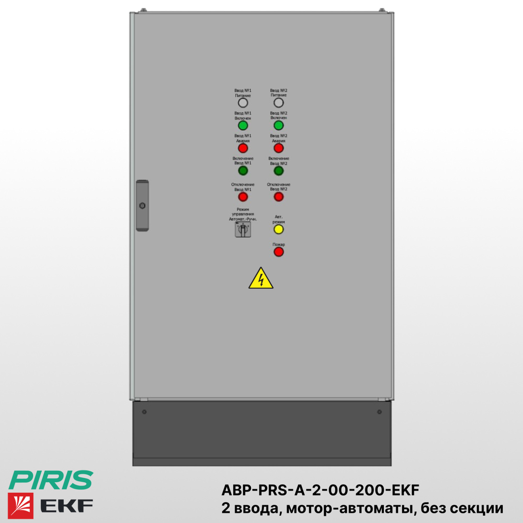 Шкаф автоматического ввода резерва — АВР-PRS-А-2-00-200-EKF напольного исполнения, из цельносварного корпуса в габаритах 1200×800×500 со степенью защиты IP31, предназначен для автоматического переключения питания между основным и резервным вводами для электроприёмников 1-й категории, когда перерыв в электроснабжении недопустим.