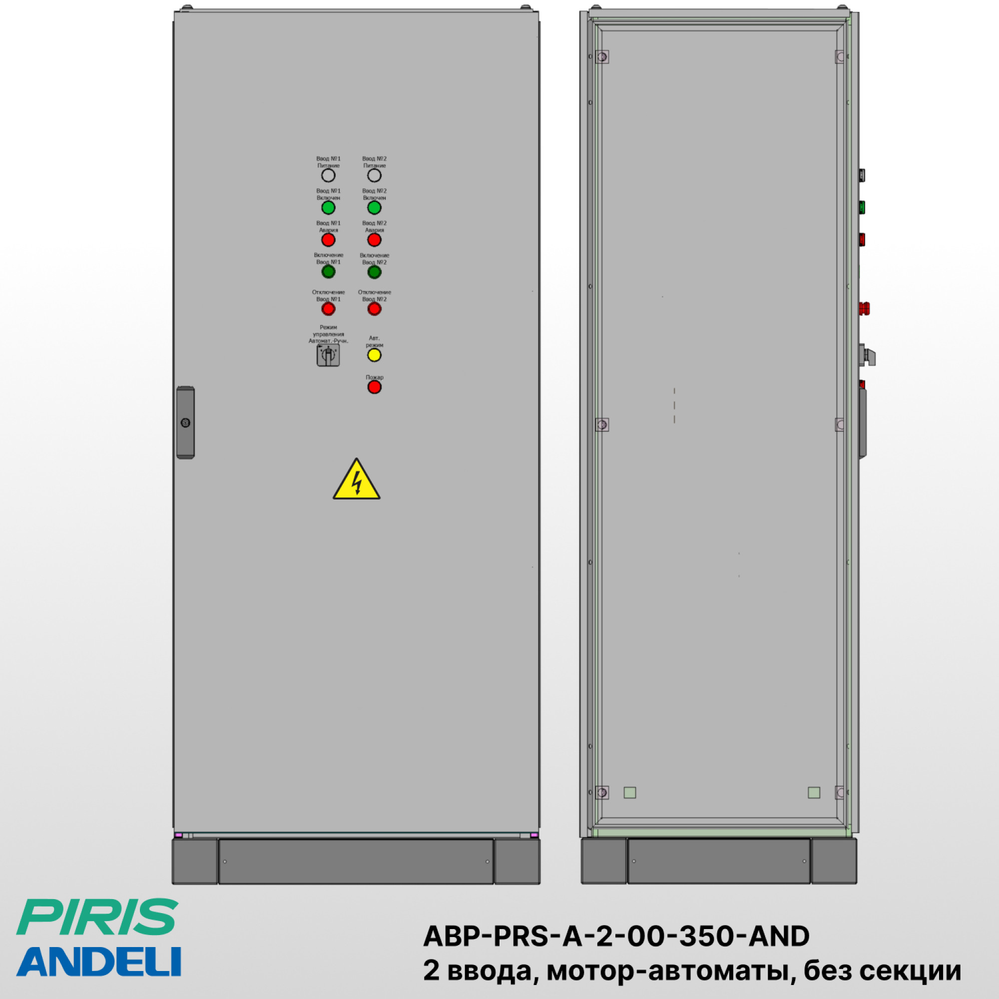 Шкаф автоматического ввода резерва — АВР-PRS-А-2-00-350-AND напольного исполнения, из цельносварного корпуса в габаритах 1800×800×600 со степенью защиты IP31, предназначен для автоматического переключения питания между основным и резервным вводами для электроприёмников 1-й категории, когда перерыв в электроснабжении недопустим.
