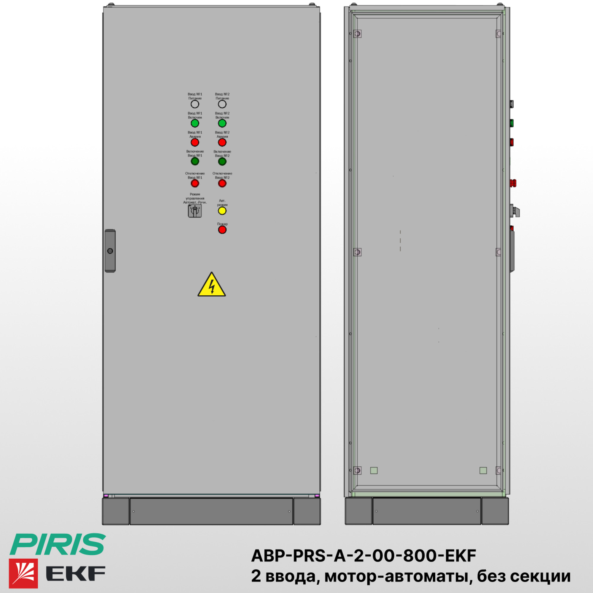 Шкаф автоматического ввода резерва — АВР-PRS-А-2-00-800-EKF напольного исполнения, из цельносварного корпуса в габаритах 1800×800×600 со степенью защиты IP31, предназначен для автоматического переключения питания между основным и резервным вводами для электроприёмников 1-й категории, когда перерыв в электроснабжении недопустим.