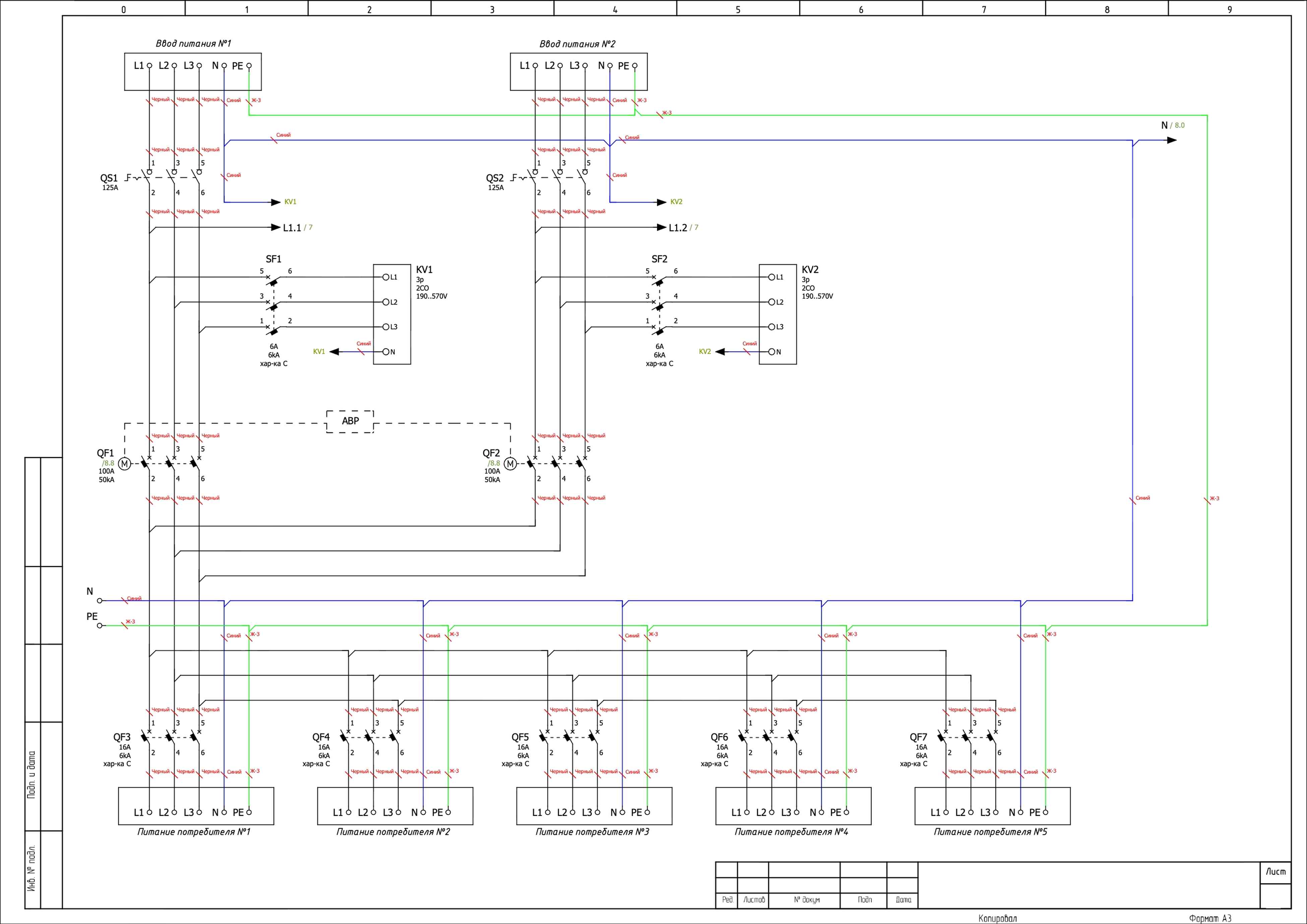 Переключение между вводами выполняется автоматическими выключателями Dr.Ferz в литом корпусе FPC-21-N-100-TM-D 100А 50кА регулир. TM-D расцеп. с моторными приводами. Вводные аппараты обеспечивают защиту от короткого замыкания и перегрузки, а также выполняют коммутацию по команде системы АВР.