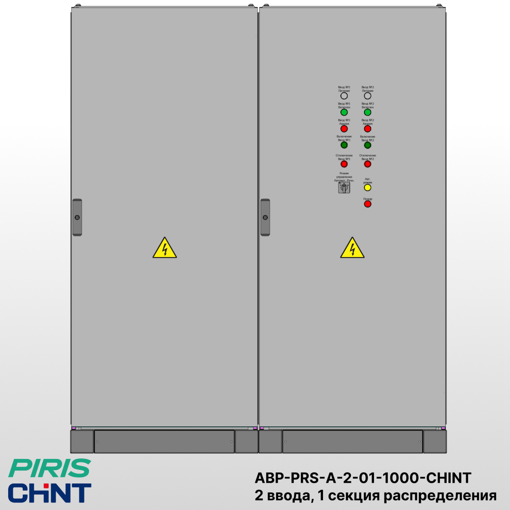 На дверце шкафа установлена панель управления с индикацией состояния вводов и секции, а также переключателями режимов работы (ручной / автоматический). Для удобства эксплуатации предусмотрен доступ к клеммам управления и силовым аппаратам.