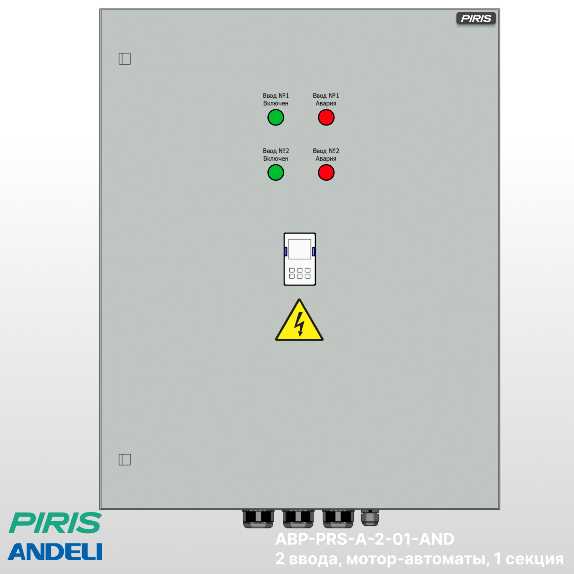 Каждый ввод выполнен на автоматическом выключателе в литом корпусе Andeli, оснащённом моторным приводом для дистанционного управления. Аппараты обеспечивают защиту цепей от короткого замыкания и перегрузок, а также выполняют функцию коммутации при срабатывании системы АВР.