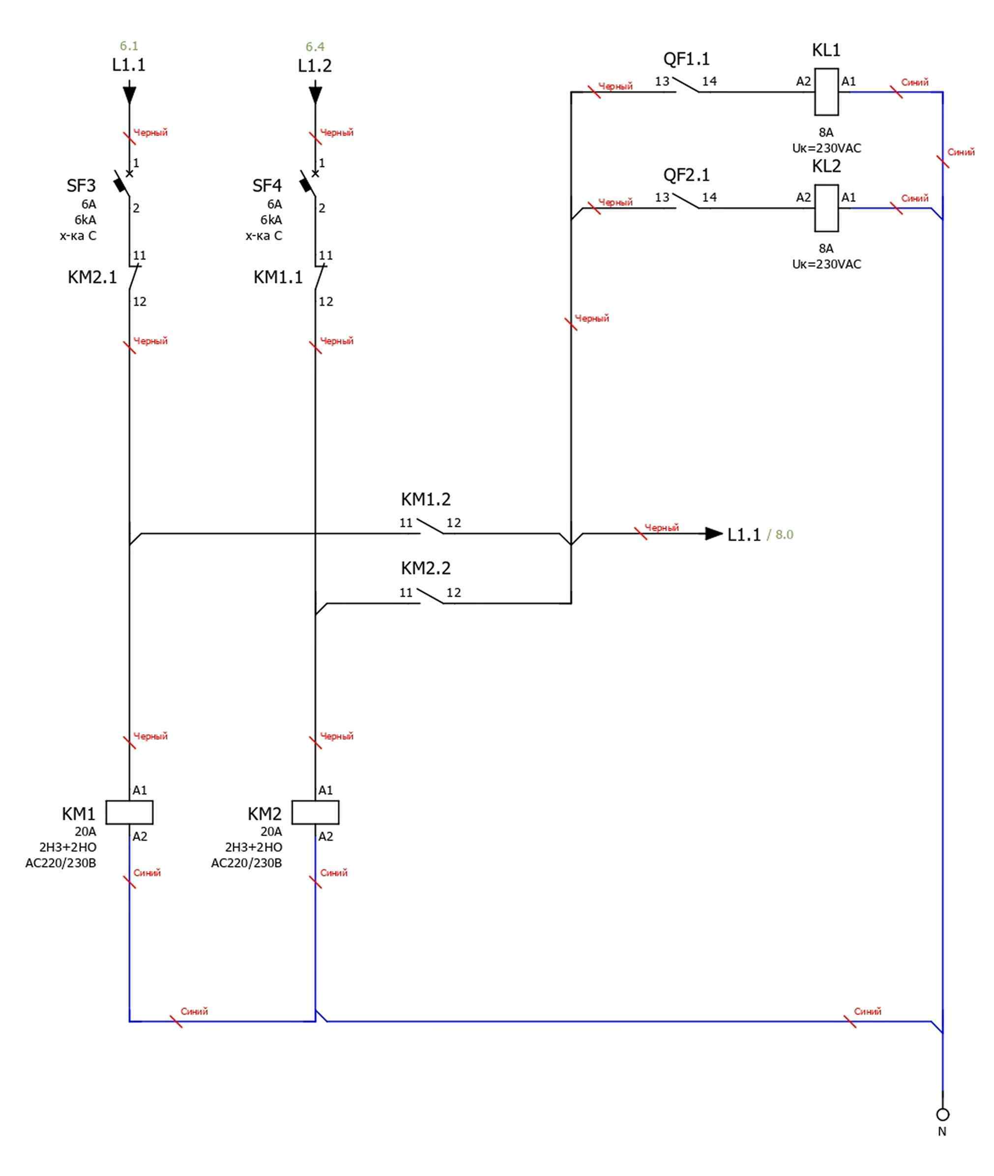 Контроль наличия и качества напряжения на каждом вводе осуществляется через реле напряжения РН-111М-УХЛ3.1. Для питания цепей управления предусмотрена отдельная схема мини-АВР, обеспечивающая резервирование питания управляющей части шкафа.
