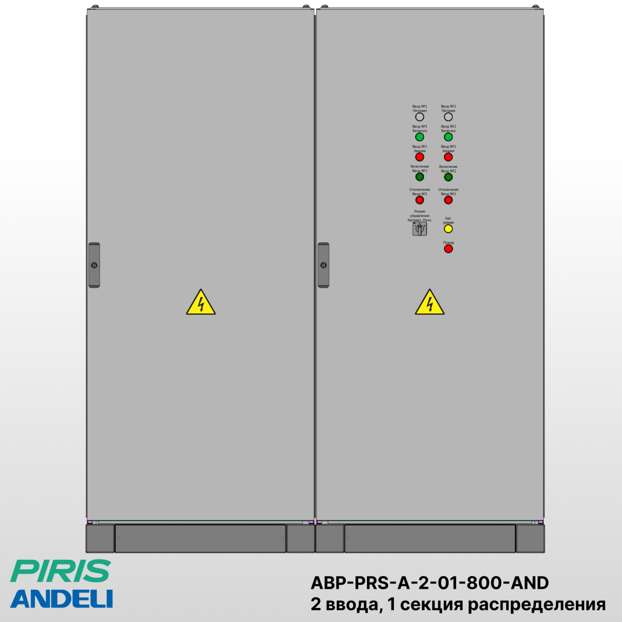 Каждый ввод выполнен на автоматическом выключателе в литом корпусе Andeli, оснащённом моторным приводом для дистанционного управления. Аппараты обеспечивают защиту цепей от короткого замыкания и перегрузок, а также выполняют функцию коммутации при срабатывании системы АВР.