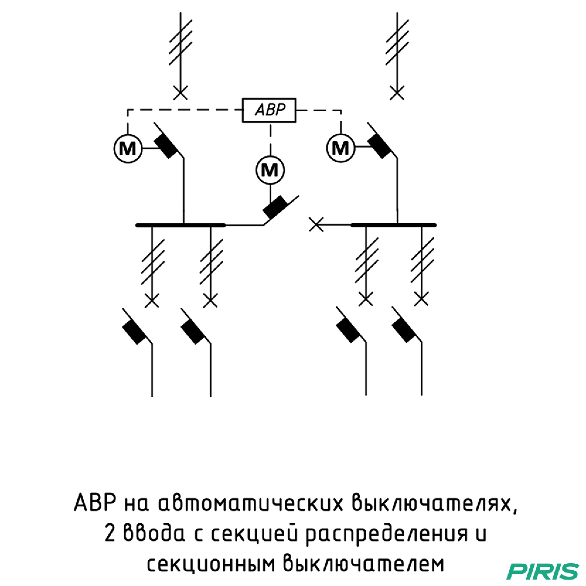 При пропадании напряжения на основном вводе система автоматически переключает питание на резервный. После восстановления параметров сети питание возвращается в исходное положение. Время переключения и логика работы задаются контроллером АВР.
