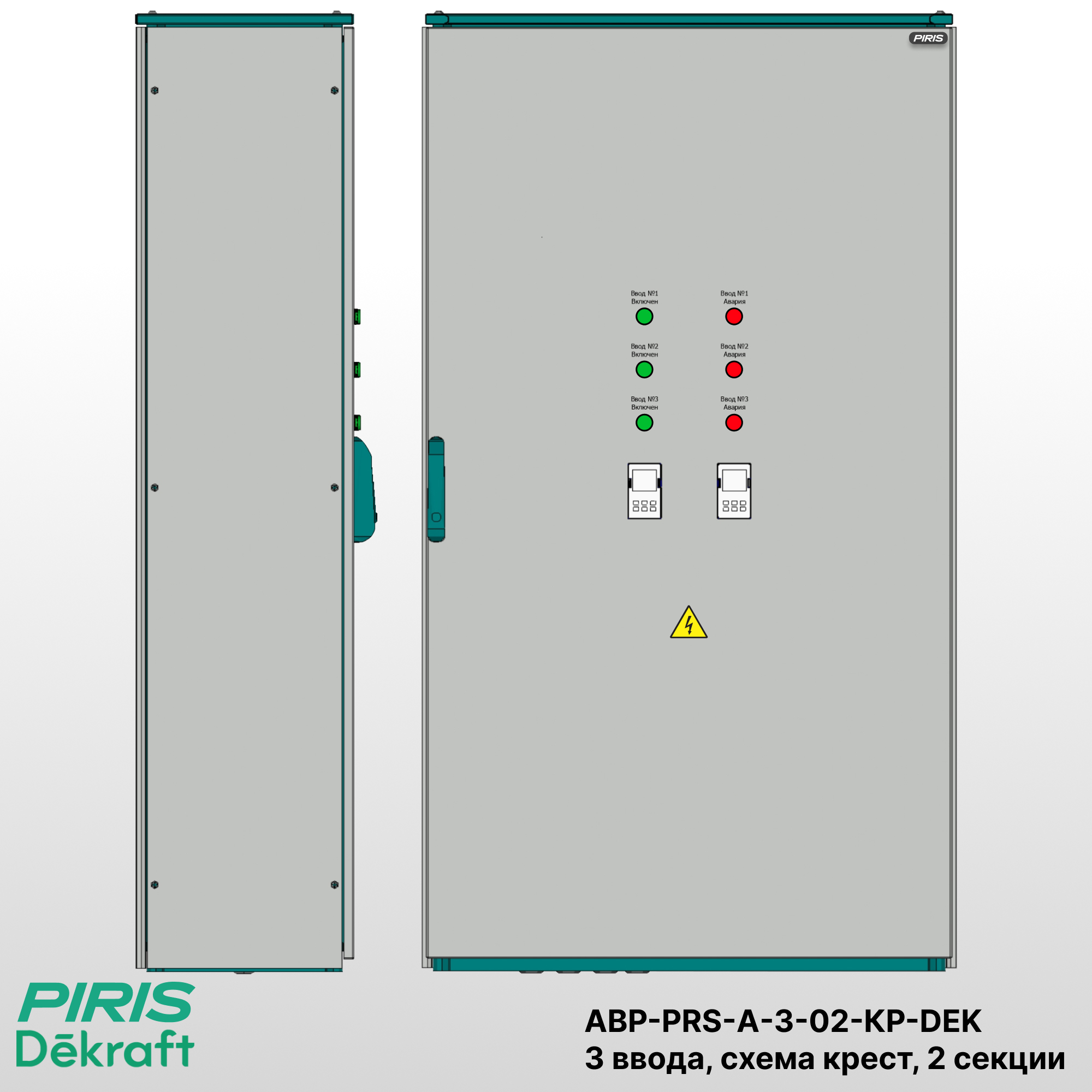 Шкаф автоматического ввода резерва АВР-PRS-А-3-02-КР-200-DEK предназначен для автоматического управления электроснабжением от трёх источников питания (сеть / сеть / ДГУ) — двух сетевых вводов и дизель-генераторной установки (ДГУ). Система обеспечивает питание нагрузки от приоритетного ввода, а при отклонении параметров сети производит автоматическое переключение на резервный ввод или генератор. После восстановления напряжения основной источник вводится в работу автоматически.