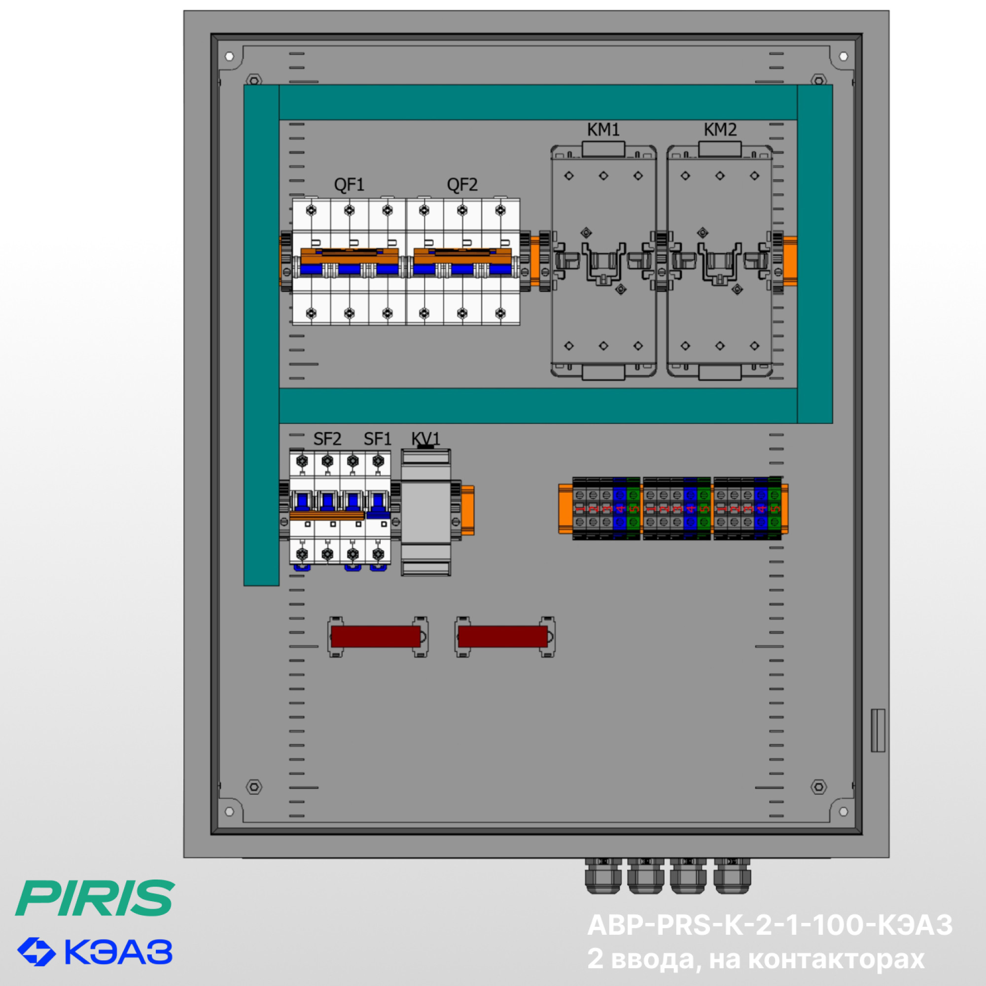 Устройства АВР-PRS-K-2-1-100-KEAZ выполнены на модульных автоматических выключателях серии OptiDin BM125-3C100 и контакторах серии OptiStart K-F-115-30-00-A230 бренда КЭАЗ.