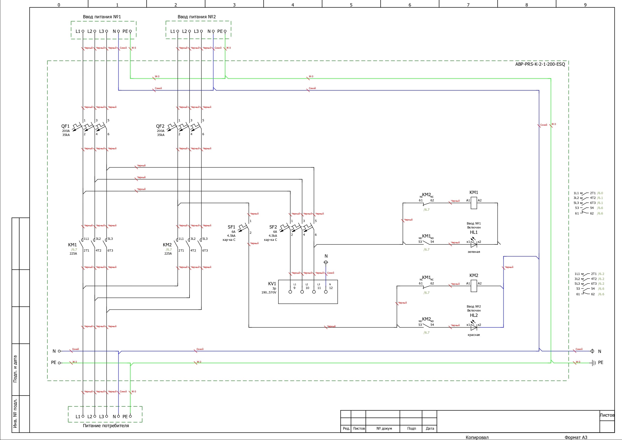 АВР-PRS-К-2-1-200-ESQ предусматривает подключение вводов снизу, с возможностью вывода на клеммы и добавления секции распределения.