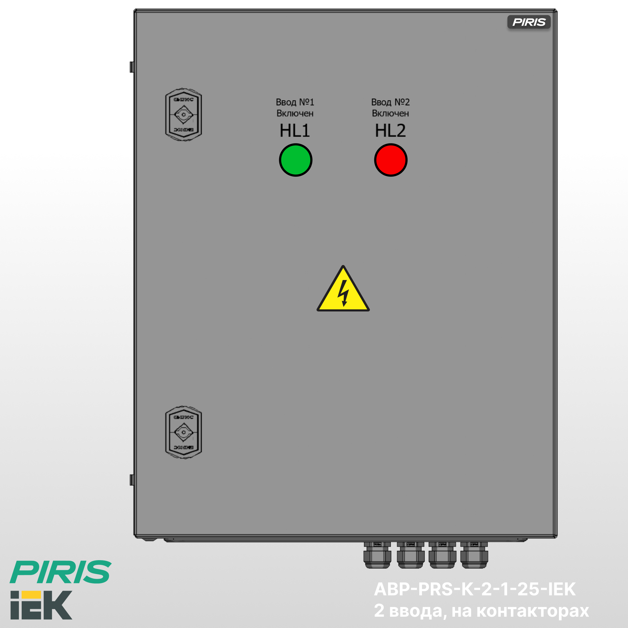 Шкаф АВР-PRS-K-2-1-25-IEK имеет возможность подключения вводов снизу, с дополнительной опцией — выводом на клеммы, добавлением секции распределения.