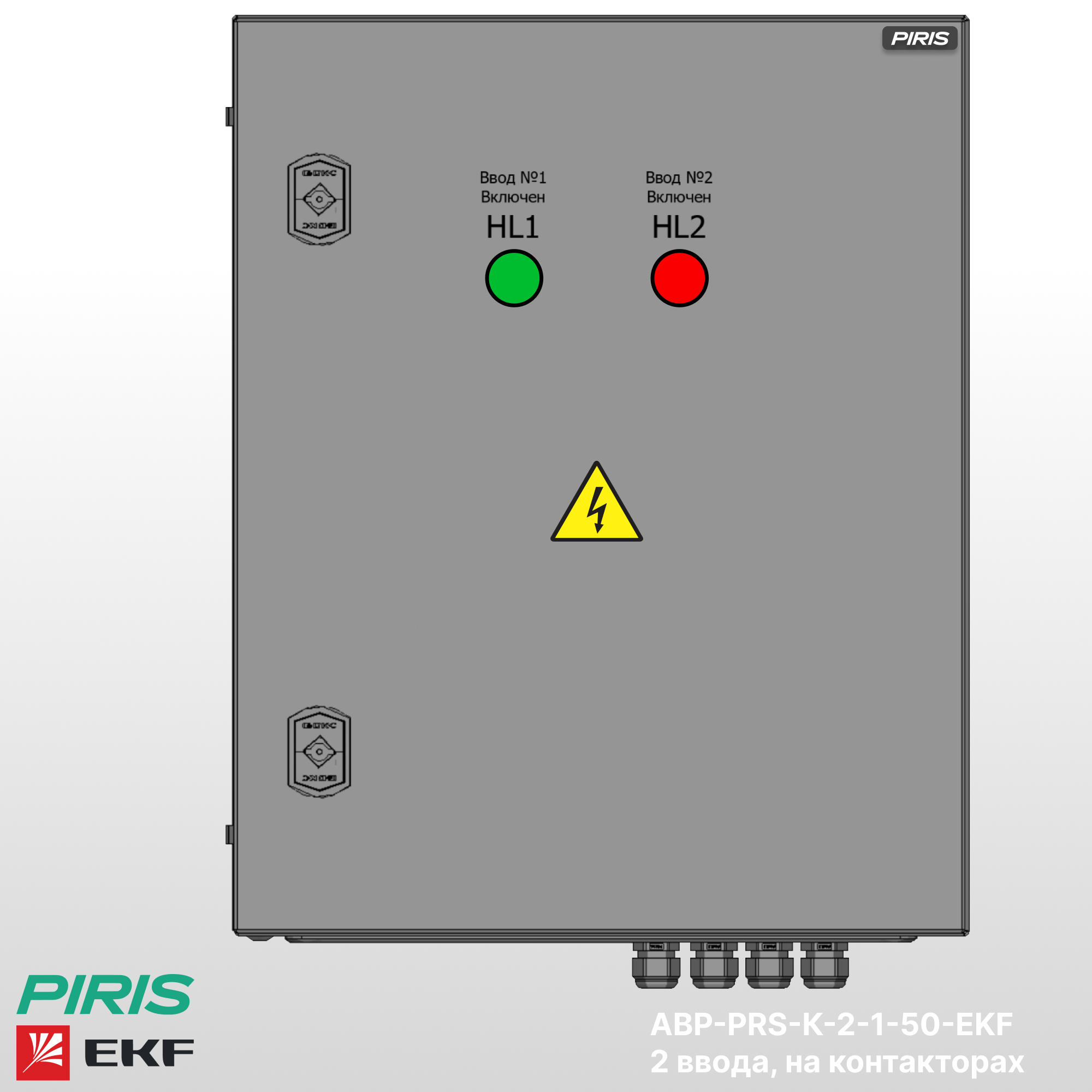Шкаф АВР-PRS-K-2-1-50-EKF имеет возможность подключения вводов снизу, с дополнительной опцией — выводом на клеммы, добавлением секции распределения.