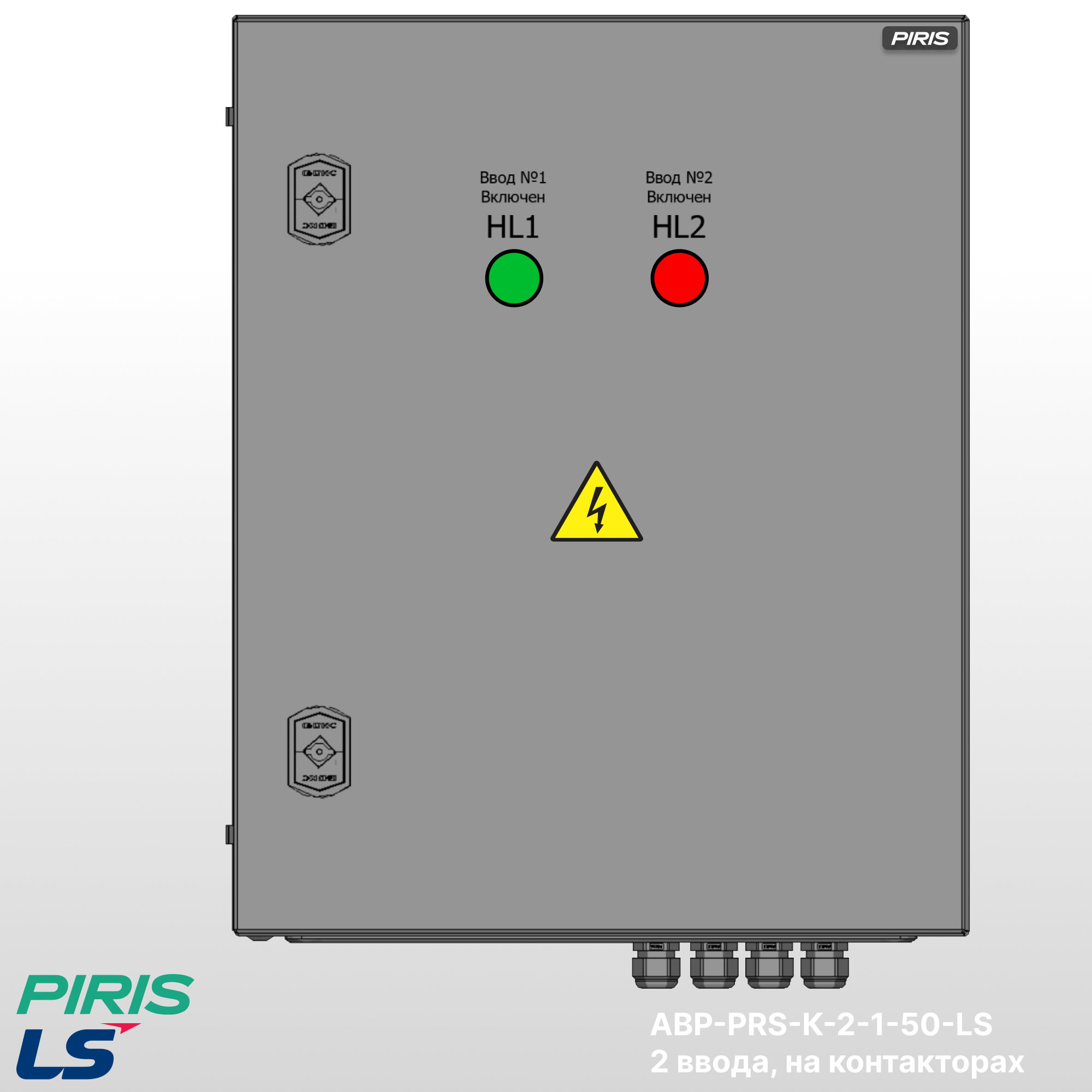 Шкаф АВР-PRS-K-2-1-50-LS имеет возможность подключения вводов снизу, с дополнительной опцией — выводом на клеммы, добавлением секции распределения.