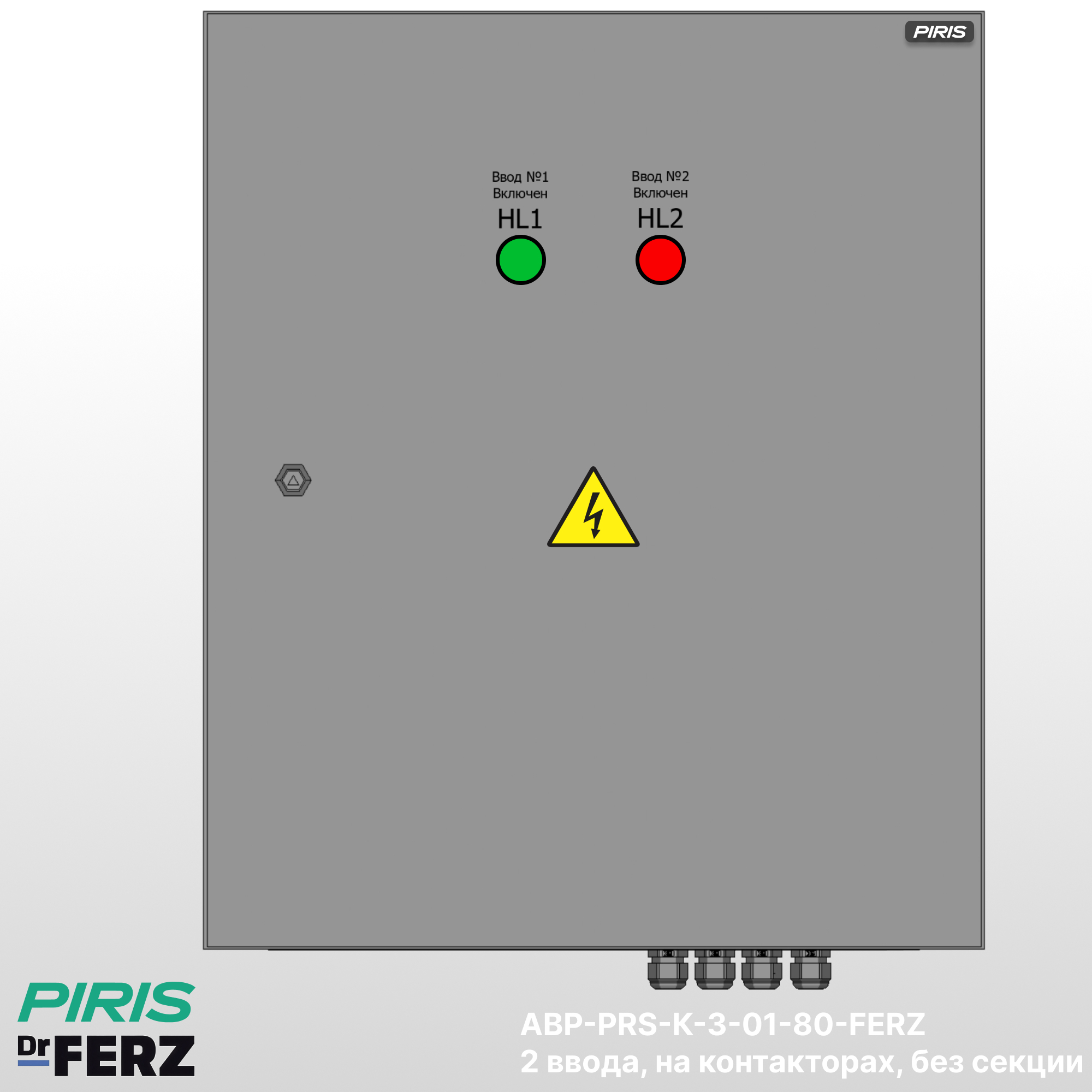 Шкаф автоматического ввода резерва АВР-PRS-К-3-01-80-FERZ предназначен для автоматического управления электроснабжением от трёх источников питания (сеть / сеть / ДГУ) — двух сетевых вводов и дизель-генераторной установки. Система обеспечивает питание нагрузки от приоритетного ввода, при отклонении параметров сети выполняет автоматическое переключение на резервный ввод или ДГУ. После восстановления напряжения основной источник вводится в работу автоматически.