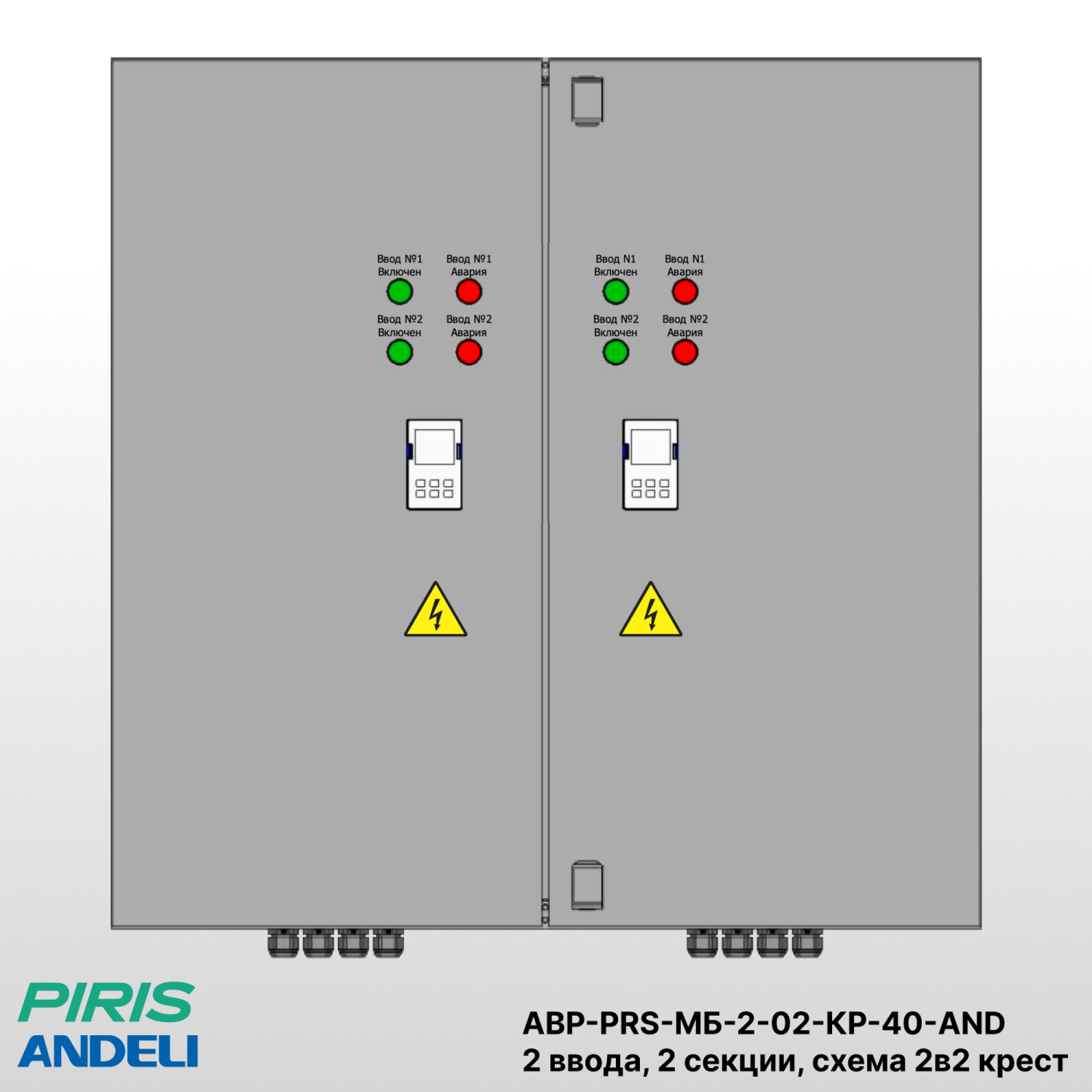 Шкаф автоматического ввода резерва (АВР) АВР-PRS-МБ-2-02-KР-40-AND предназначен для автоматического переключения питания между двумя равноценными вводами по схеме «2в2 крест». Конструкция выполнена на базе моноблочных устройств автоматического ввода резерва Andeli HATS 7 и автоматических выключателей, обеспечивающих защиту цепей от перегрузки и короткого замыкания.
