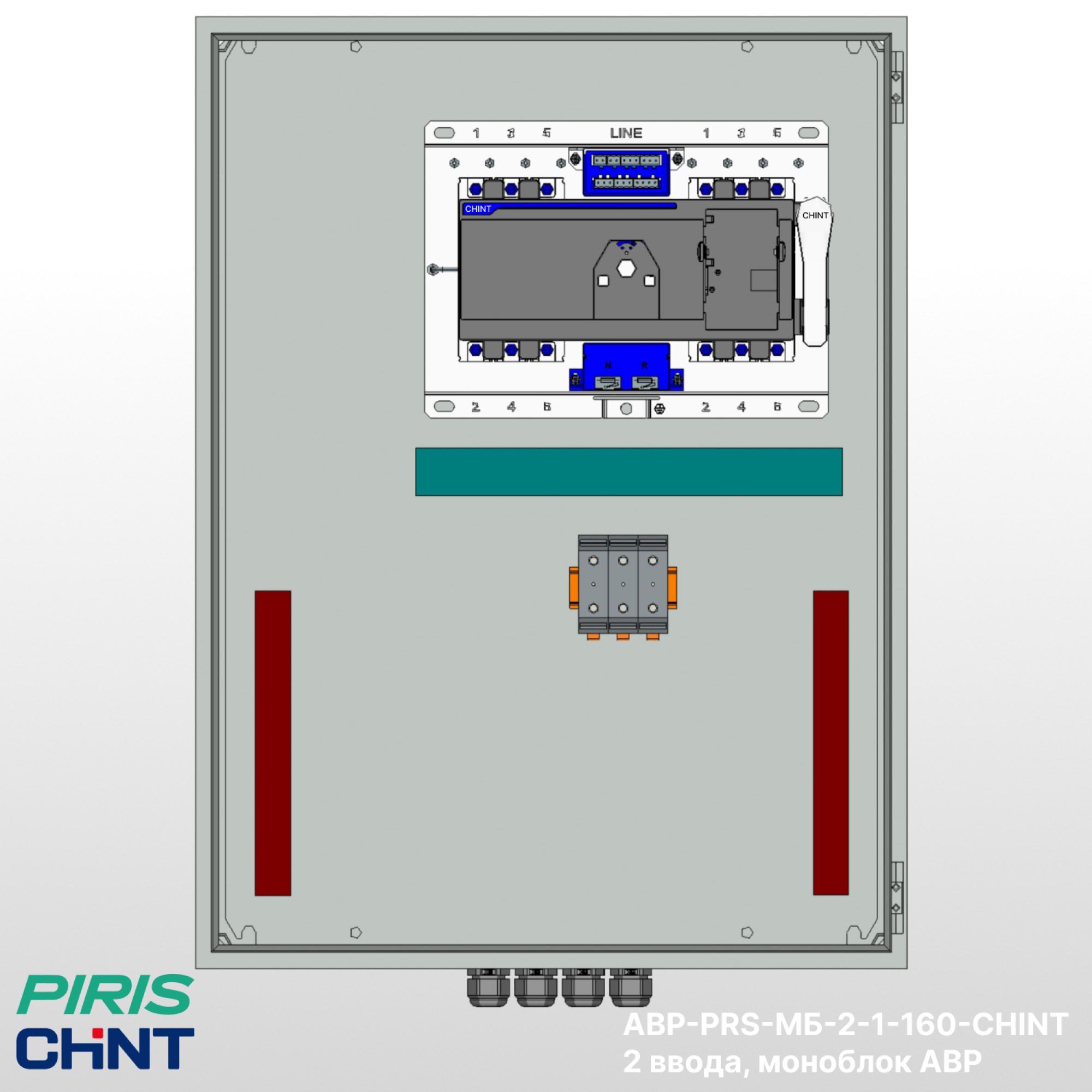 Устройства АВР-PRS-МБ-2-1-160-CHINT выполнены на моноблочных АВР серии NXZM бренда CHINT, имеет два ввода, индикацию и выносной дисплей контроллера на дверь.