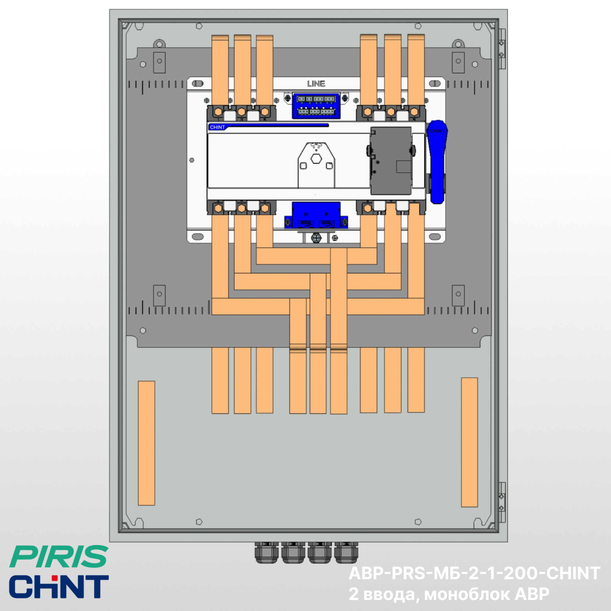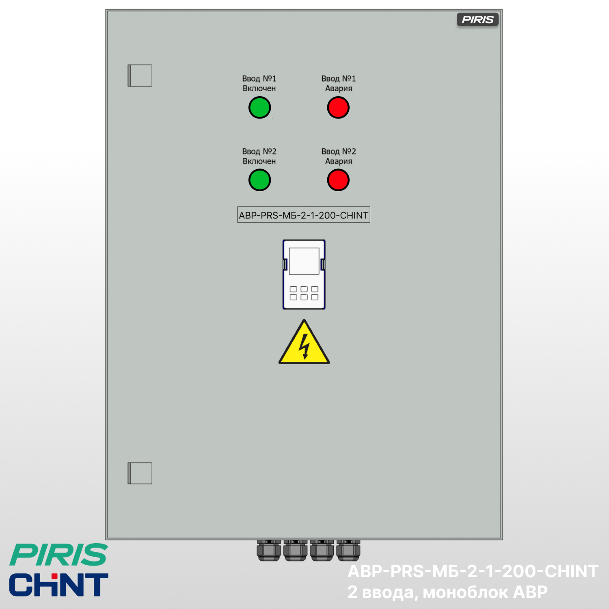 Устройства АВР-PRS-МБ-2-1-200-CHINT выполнены на моноблочных АВР серии NXZM бренда CHINT, имеет два ввода, индикацию и выносной дисплей контроллера на дверь.