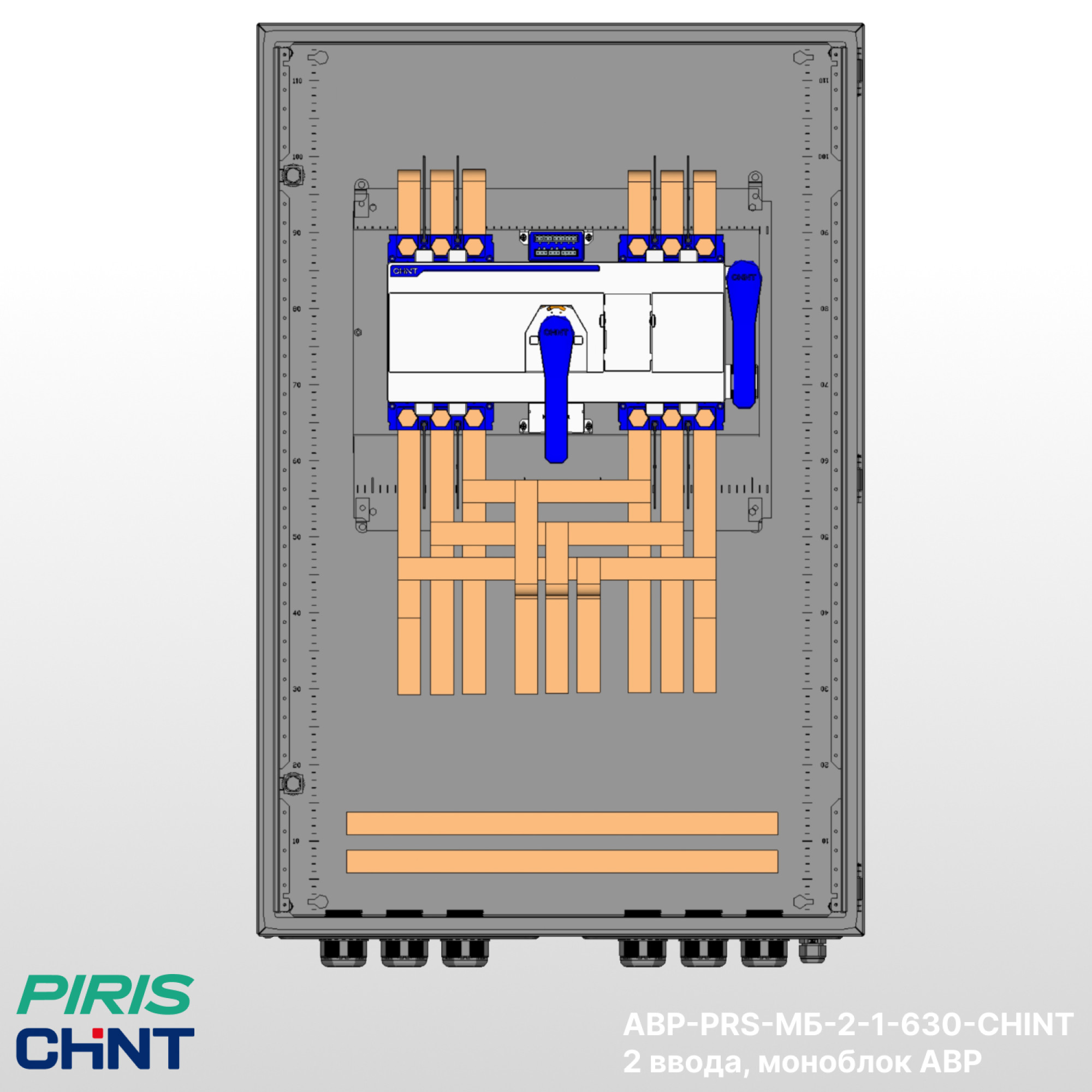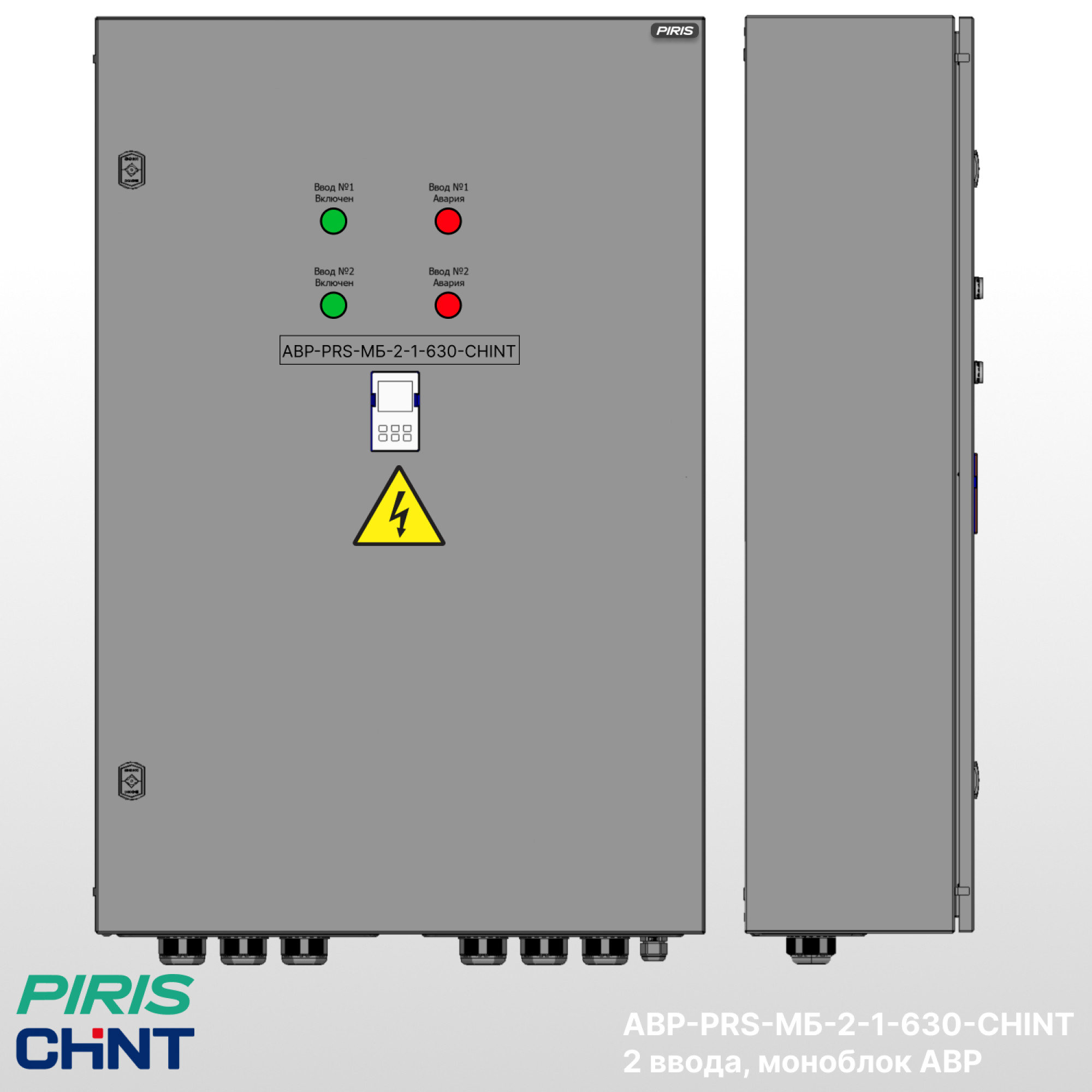 Устройства АВР-PRS-МБ-2-1-630-CHINT выполнены на моноблочных АВР серии NXZM бренда CHINT, имеет два ввода, индикацию и выносной дисплей контроллера на дверь.