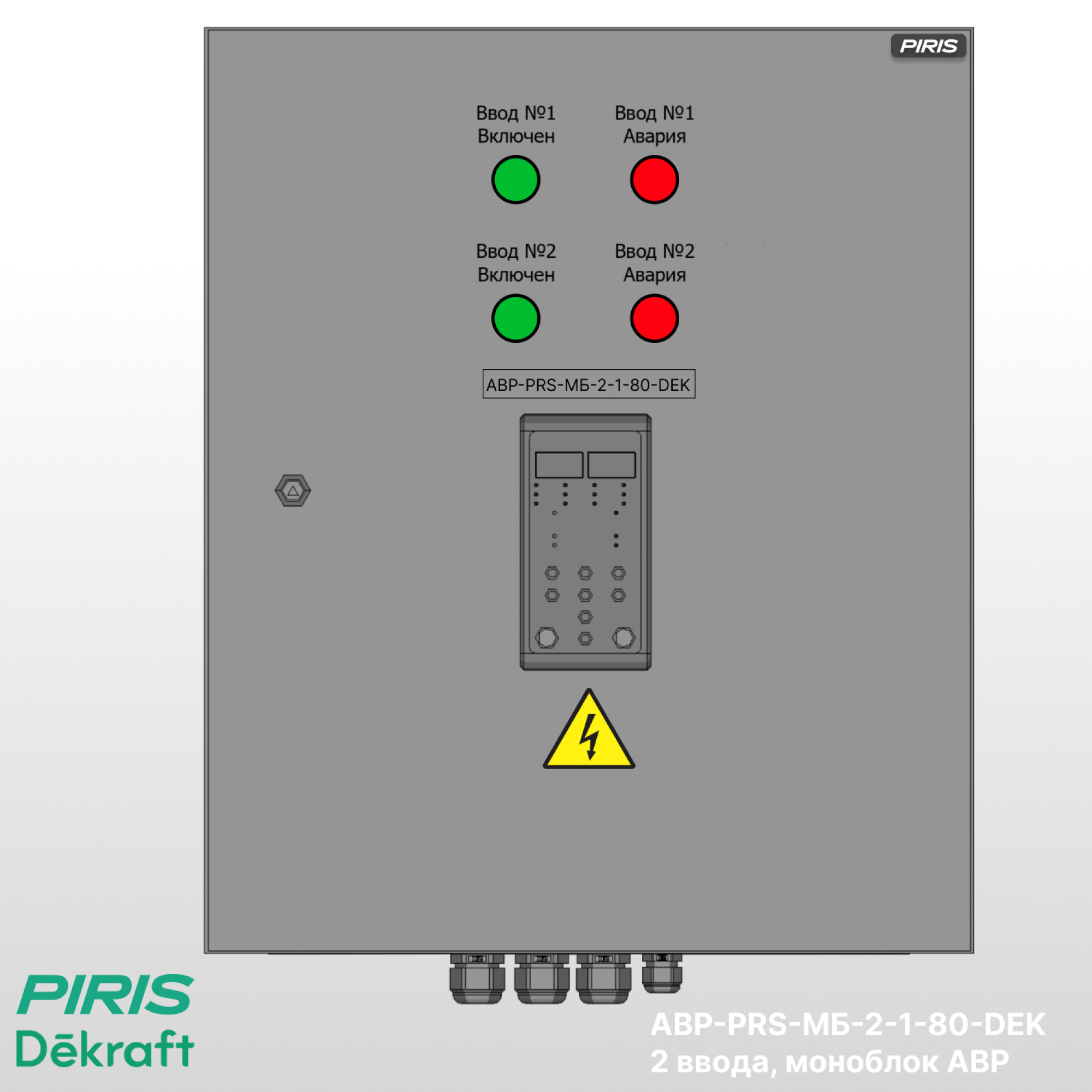 Устройства АВР-PRS-МБ-2-1-80-DEK выполнены на моноблочных АВР серии АВР-302 бренда Dekraft, имеет два ввода, индикацию и выносной дисплей контроллера на дверь.