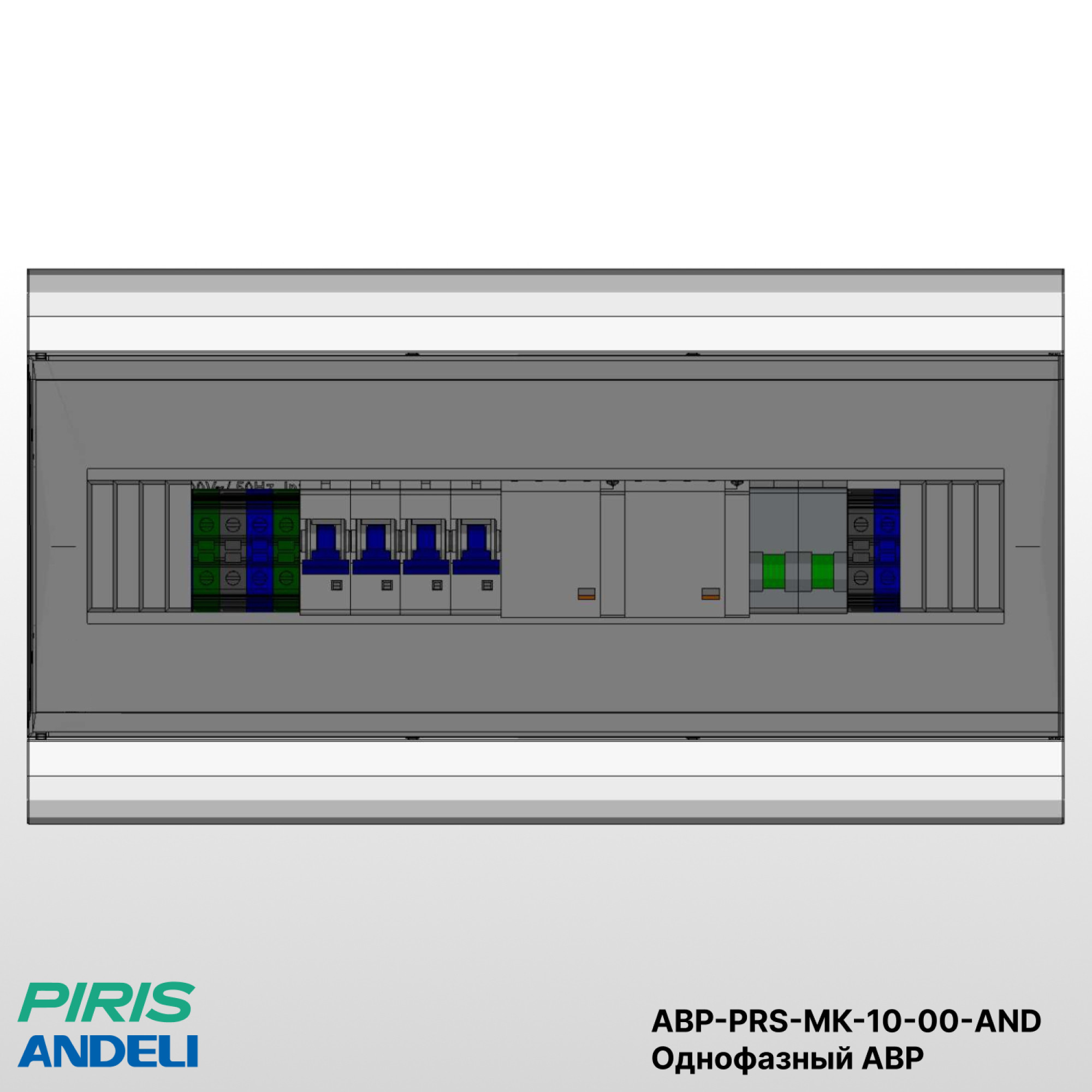 Шкаф автоматического ввода резерва — АВР-PRS-МК-10-00-AND навесного исполнения, в пластиковом корпусе габаритами 197×369×95 мм со степенью защиты IP41, предназначен для автоматического переключения однофазной нагрузки на резервный ввод при пропадании напряжения на основном источнике питания.