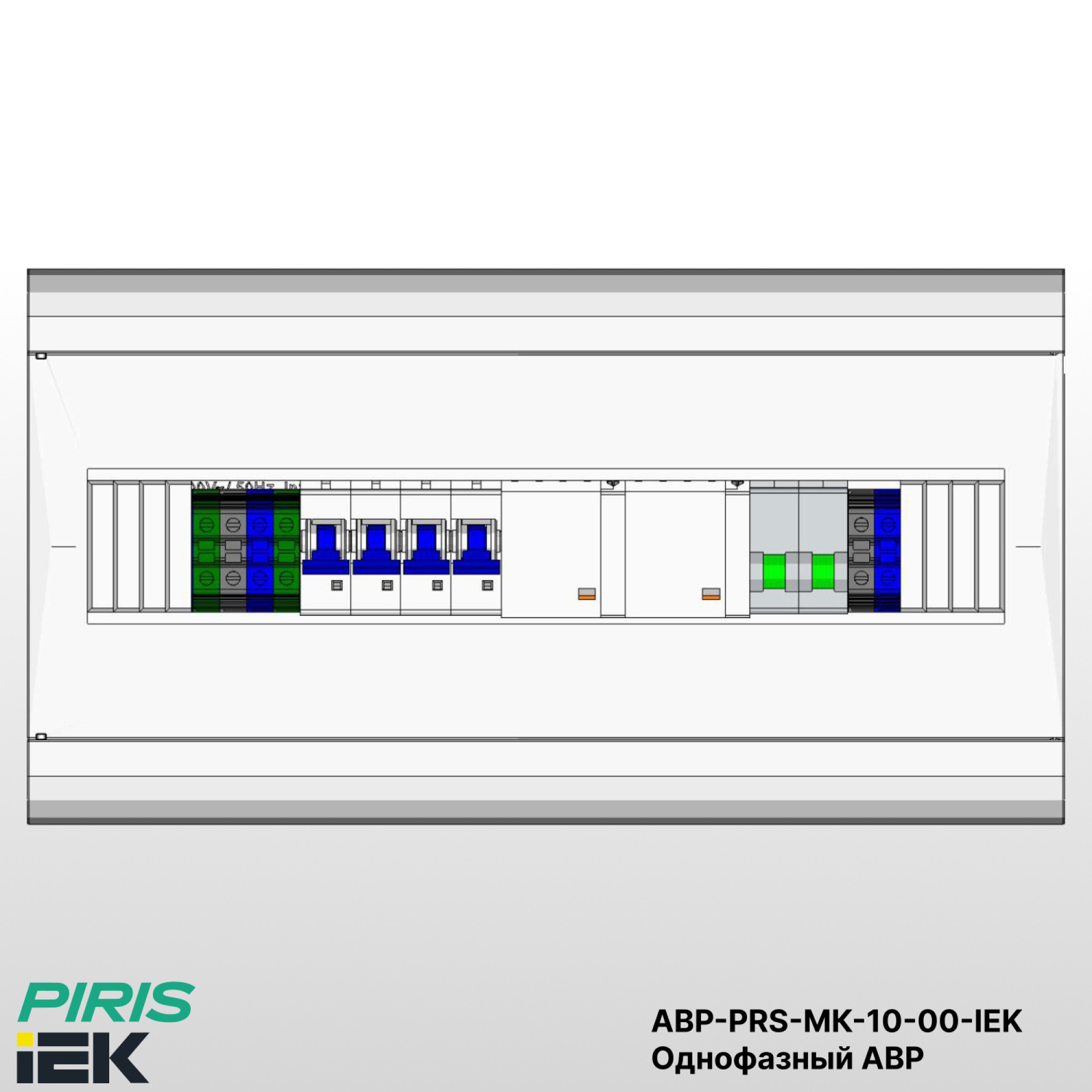 Шкаф автоматического ввода резерва — АВР-PRS-МК-10-00-IEK навесного исполнения, в пластиковом корпусе габаритами 197×369×95 мм со степенью защиты IP41, предназначен для автоматического переключения однофазной нагрузки на резервный ввод при пропадании напряжения на основном источнике питания.