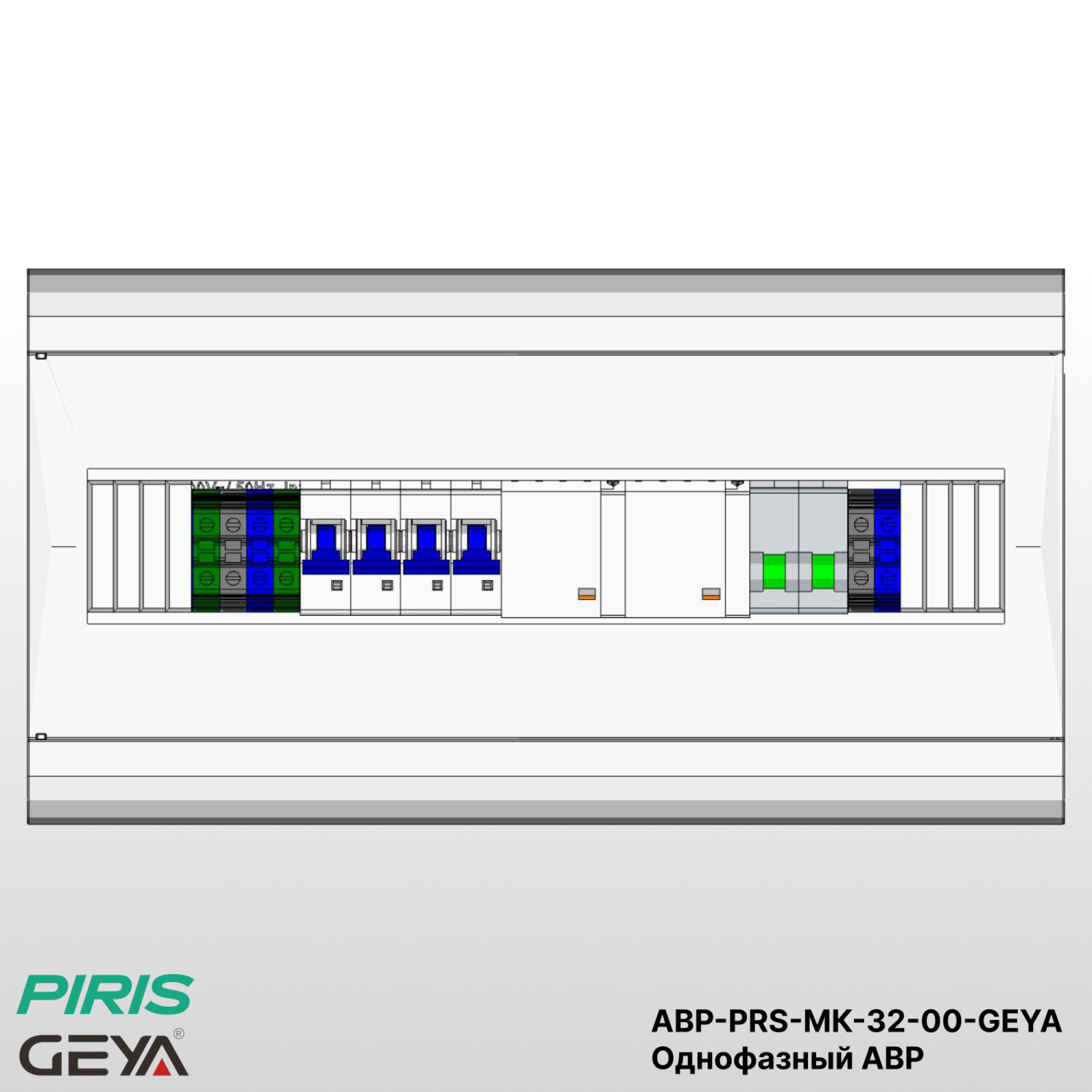Шкаф автоматического ввода резерва — АВР-PRS-МК-32-00-GEYA навесного исполнения, в пластиковом корпусе габаритами 197×369×95 мм со степенью защиты IP41, предназначен для автоматического переключения однофазной нагрузки на резервный ввод при пропадании напряжения на основном источнике питания.