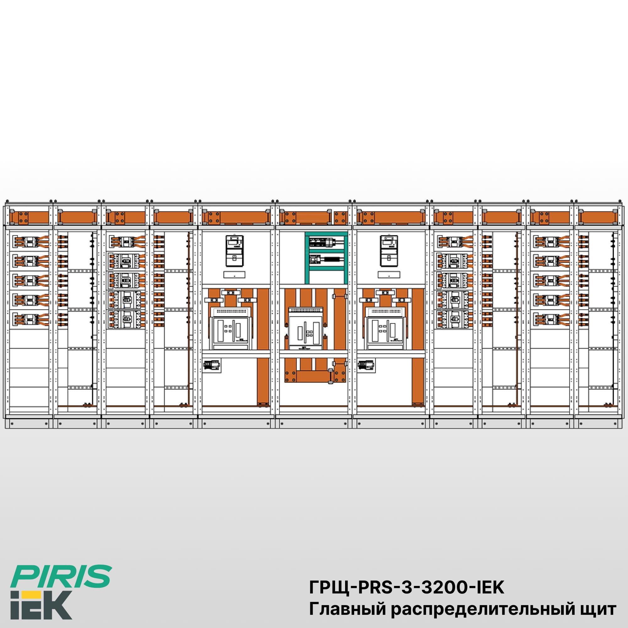Конструкция ГРЩ ГРЩ-PRS-3-3200-IEK включает вводные панели, панель ДГУ, секционный аппарат (при наличии), систему медных шин с заданным током КЗ и аппаратные блоки защиты и коммутации отходящих линий. Щит применяется как основной распределительный центр на объекте с требованием обеспечения непрерывного электропитания.