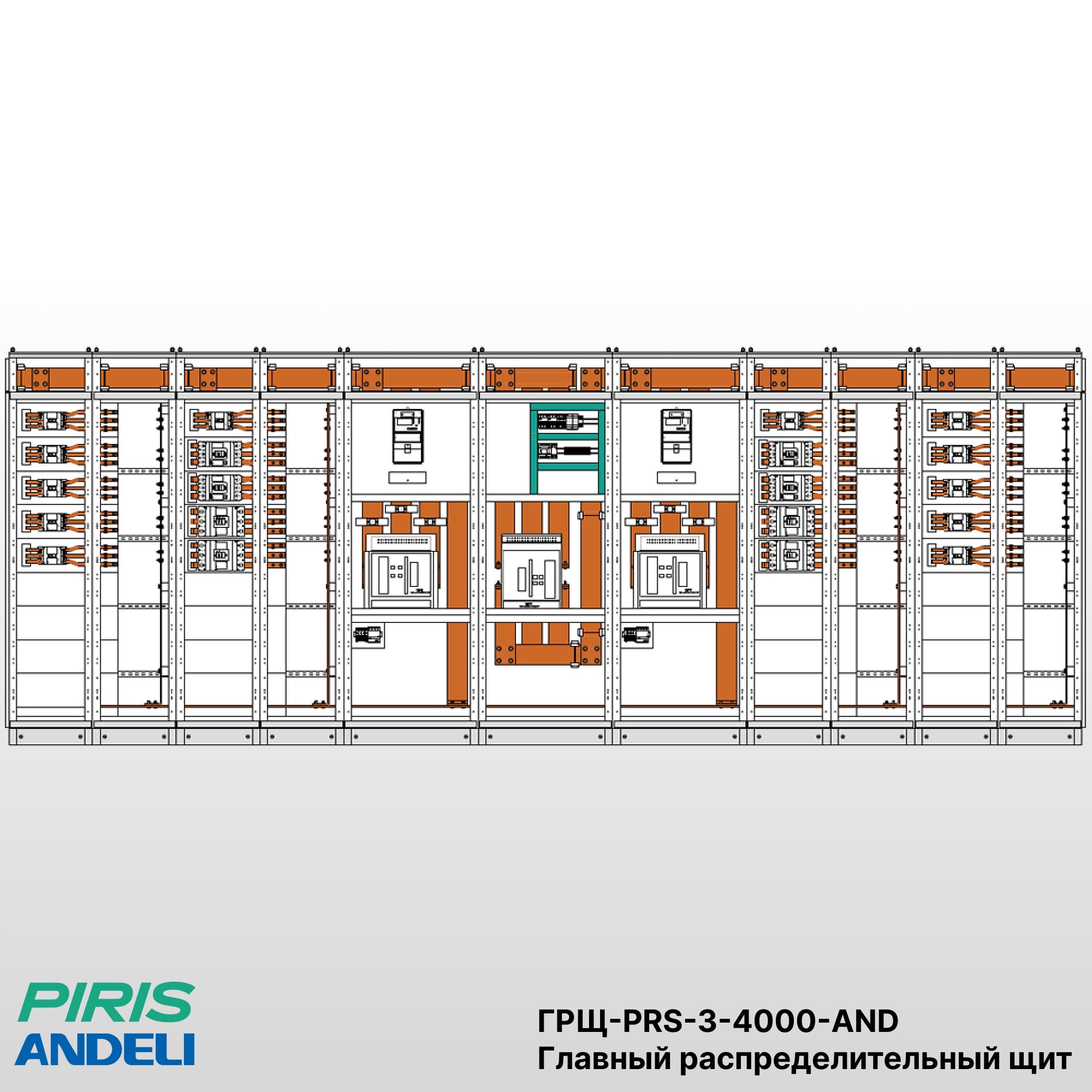 Конструкция ГРЩ ГРЩ-PRS-3-4000-AND включает вводные панели, панель ДГУ, секционный аппарат (при наличии), систему медных шин с заданным током КЗ и аппаратные блоки защиты и коммутации отходящих линий. Щит применяется как основной распределительный центр на объекте с требованием обеспечения непрерывного электропитания.