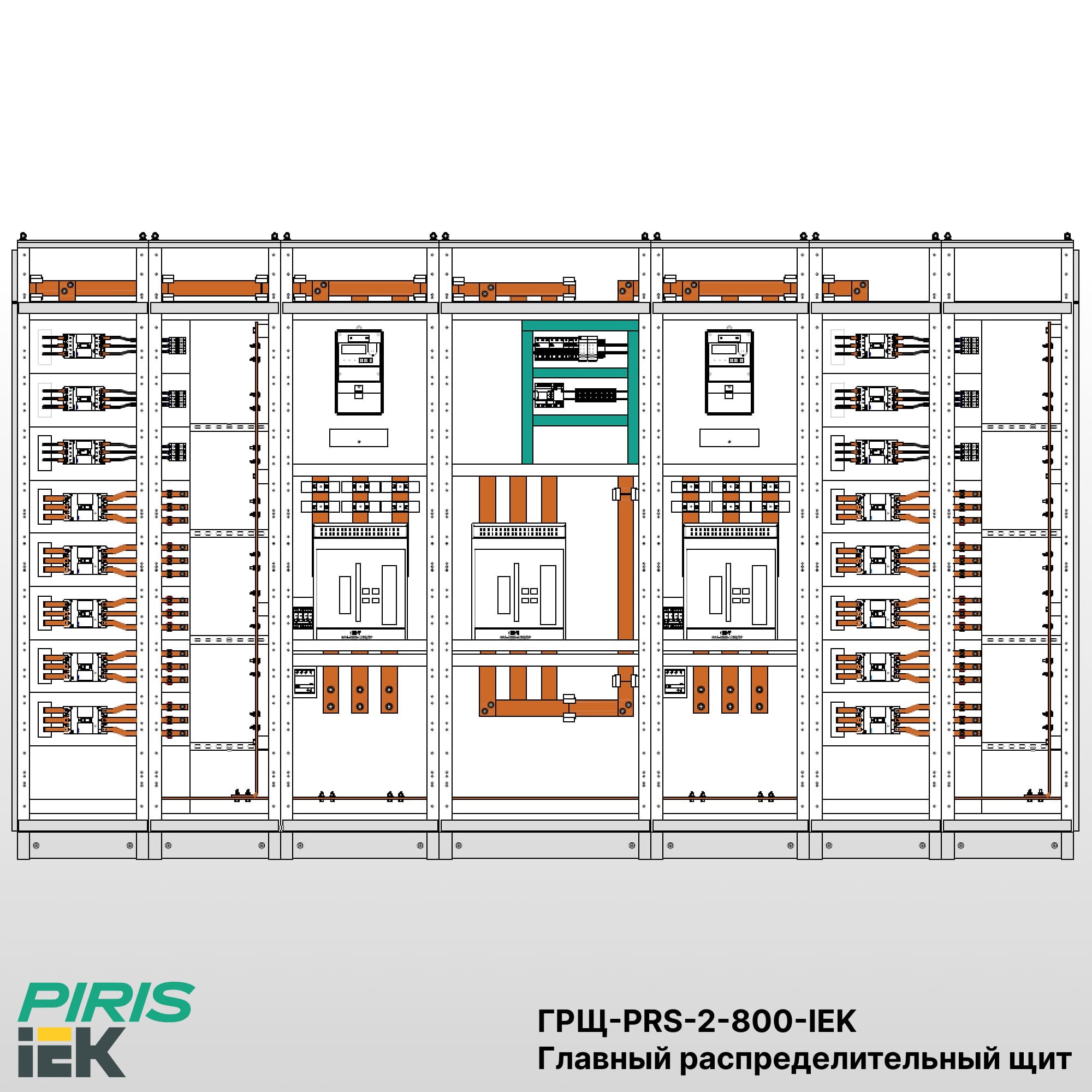 Конструкция ГРЩ ГРЩ-PRS-2-800-IEK предусматривает вводные и линейные панели, секционный аппарат (при наличии), систему медных шин, аппаратуру защиты и коммутации отходящих линий.