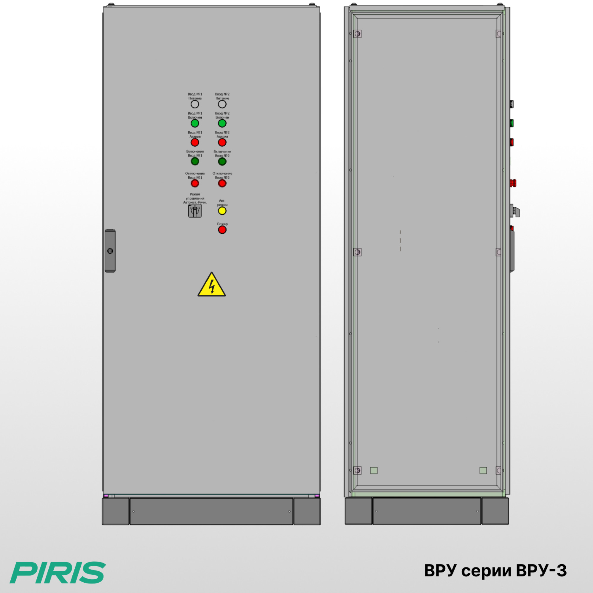 Вводно-распределительное устройство ВРУ-3 представляет собой металлический корпус напольного исполнения одностороннего обслуживания, состоящий из передней и задней рамы в сборе. Угол открывания двери не менее 95°. Устройство комплектуется внутренней рамой в зависимости от назначения ВРУ, внутри которого размещаются аппараты управления и распределения, счетчики электроэнергии, фотореле или таймеры, а также шины c различными элементами конструкции. Пространство шкафа разделено на отсеки для установки оборудования. Боковые панели съемные, что при рядном расположении нескольких распределительных устройств позволяет минимизировать длину соединительных проводов.