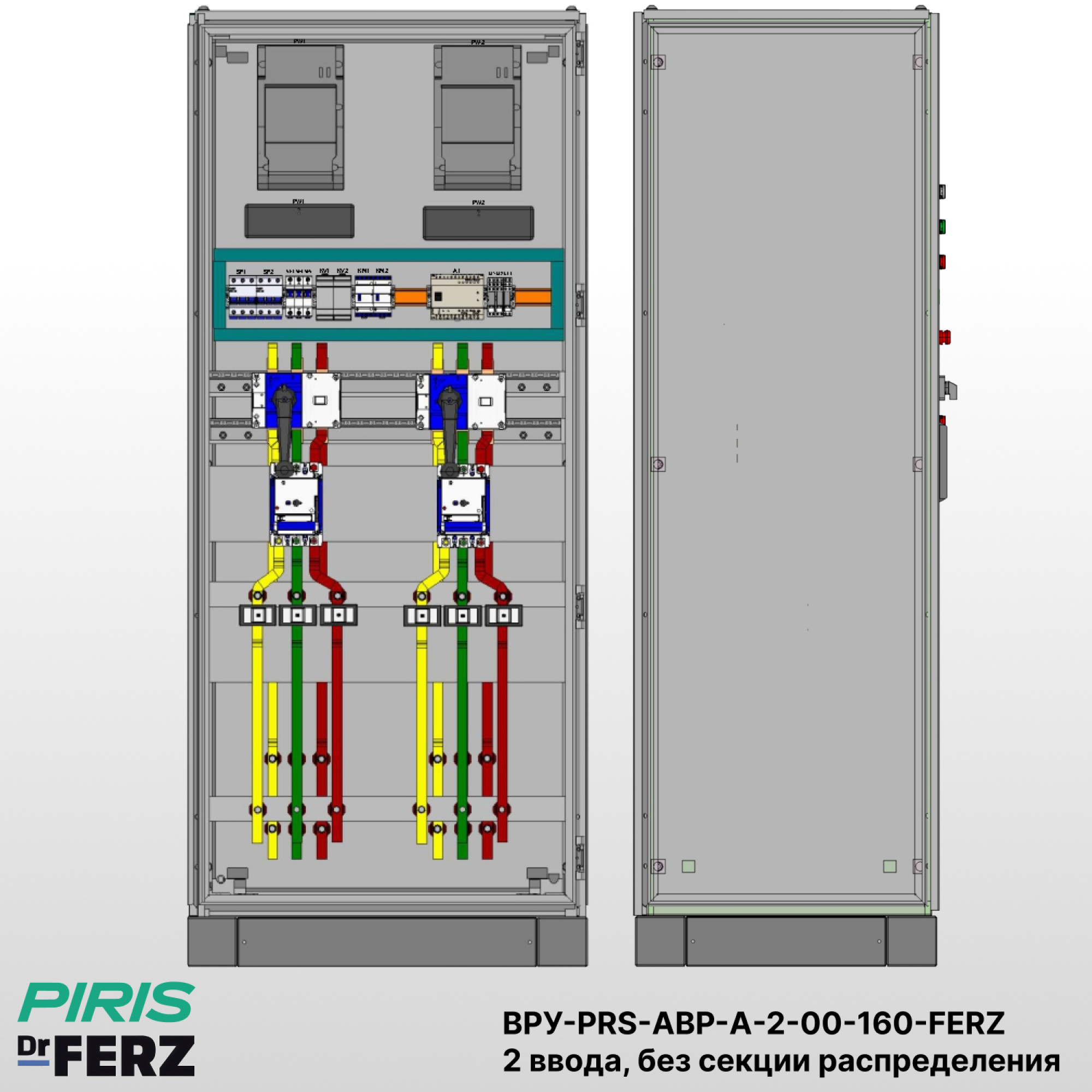 Вводно-распределительное устройство с автоматическим вводом резерва ВРУ-PRS-АВР-А-2-00-160-FERZ предназначено для приёма и автоматического распределения питания между двумя независимыми вводами. Щит ВРУ-PRS-АВР-А-2-00-160-FERZ обеспечивает надёжное электроснабжение потребителей 1-й категории, где перерыв в подаче электроэнергии недопустим.
