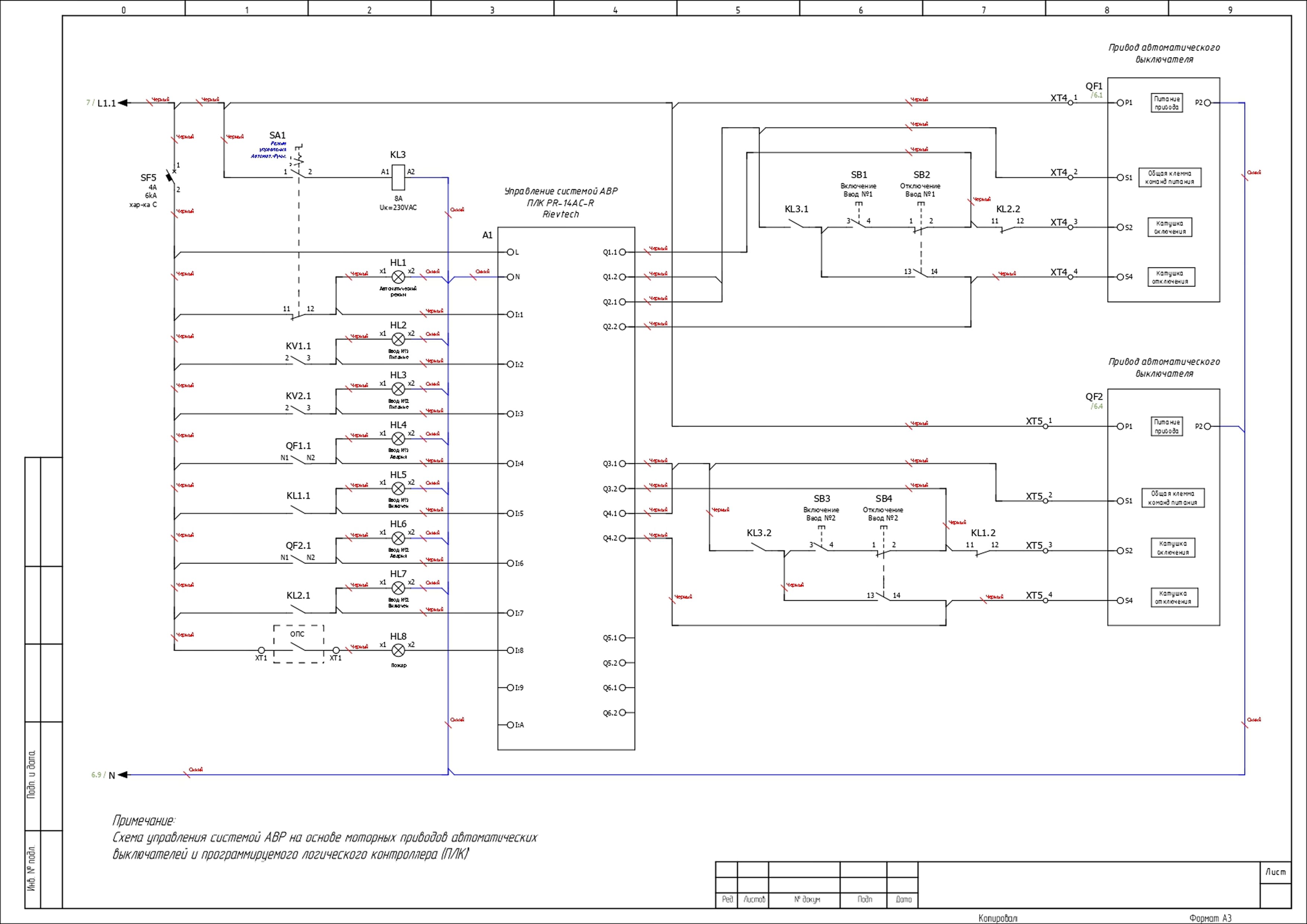 ВРУ-PRS-АВР-А-2-00-320-FERZ оснащен системой автоматического ввода резерва. Управление осуществляется автоматическими выключателями в литом корпусе Dr.Ferz в литом корпусе FPC-21-N-400-TM-D 320А 50кА рег. TM-D расцепитель с термомагнитным расцепителем совместно с контроллером ПЛК Rievtech PR-14AC-R. Ресурс выходных реле контроллера — до 100 000 коммутационных циклов при номинальной нагрузке (AC-1), что обеспечивает длительную и стабильную работу.