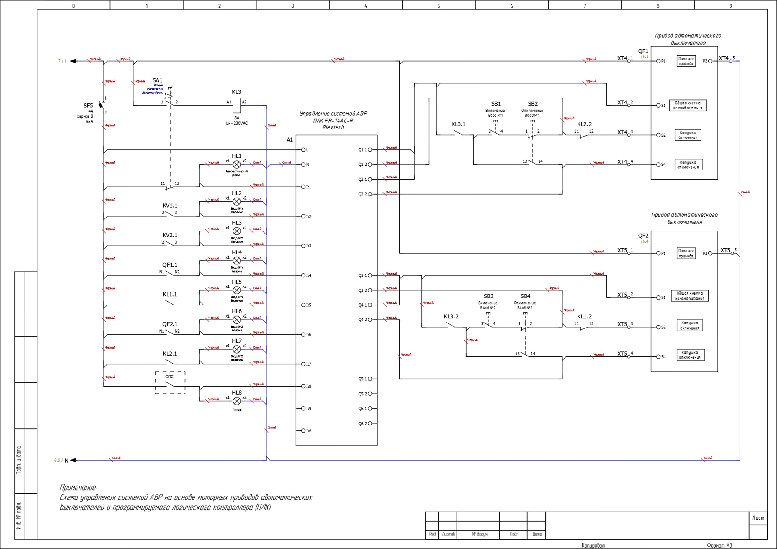 ВРУ-PRS-АВР-А-2-00-400-CHINT оснащен системой автоматического ввода резерва. Управление осуществляется автоматическими выключателями в литом корпусе CHINT NXM-400S/3P 400A 50кА с термомагнитным расцепителем совместно с контроллером ПЛК Rievtech PR-14AC-R. Ресурс выходных реле контроллера — до 100 000 коммутационных циклов при номинальной нагрузке (AC-1), что обеспечивает длительную и стабильную работу.
