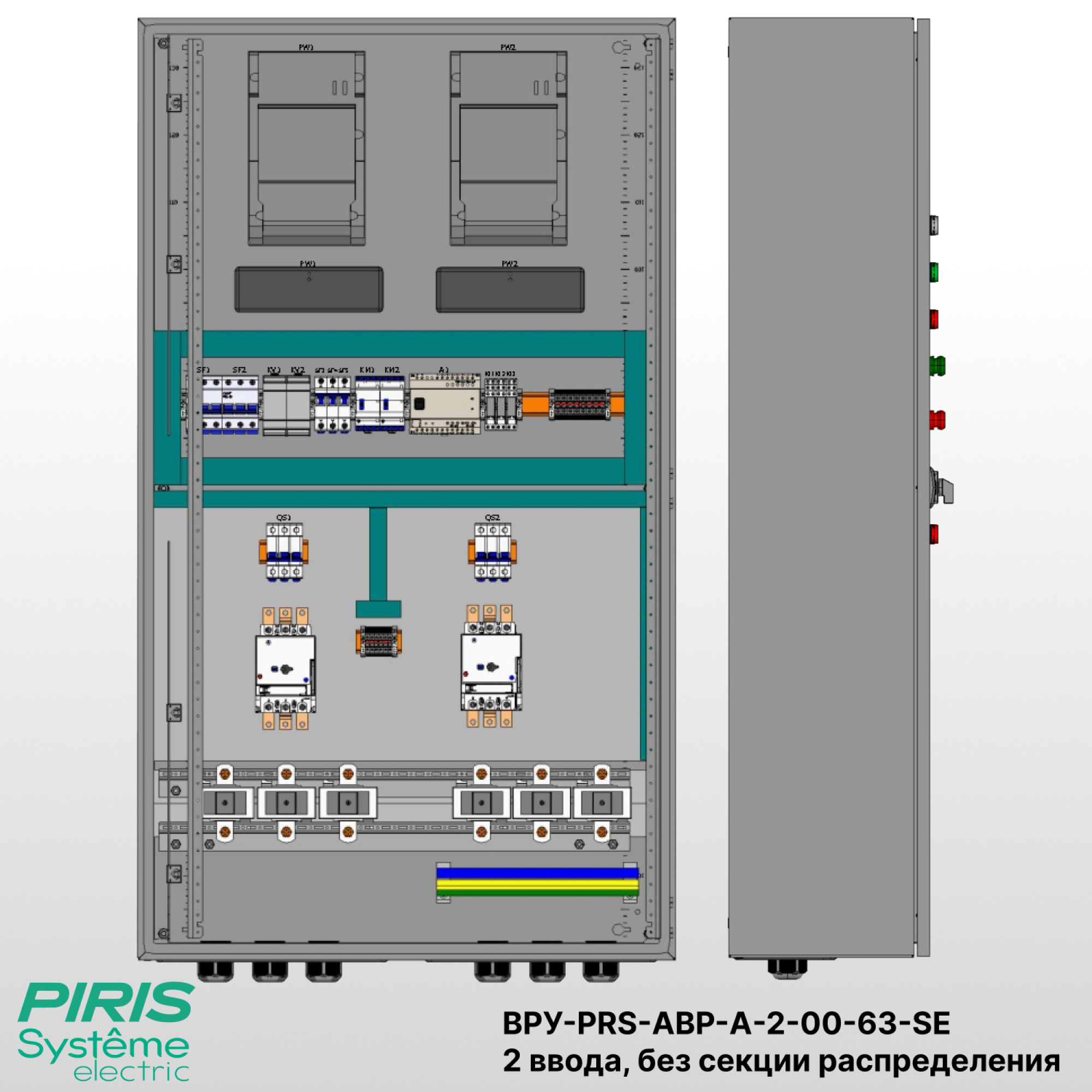 Вводно-распределительное устройство с автоматическим вводом резерва ВРУ-PRS-АВР-А-2-00-63-SE предназначено для приёма и автоматического распределения питания между двумя независимыми вводами. Щит ВРУ-PRS-АВР-А-2-00-63-SE обеспечивает надёжное электроснабжение потребителей 1-й категории, где перерыв в подаче электроэнергии недопустим.