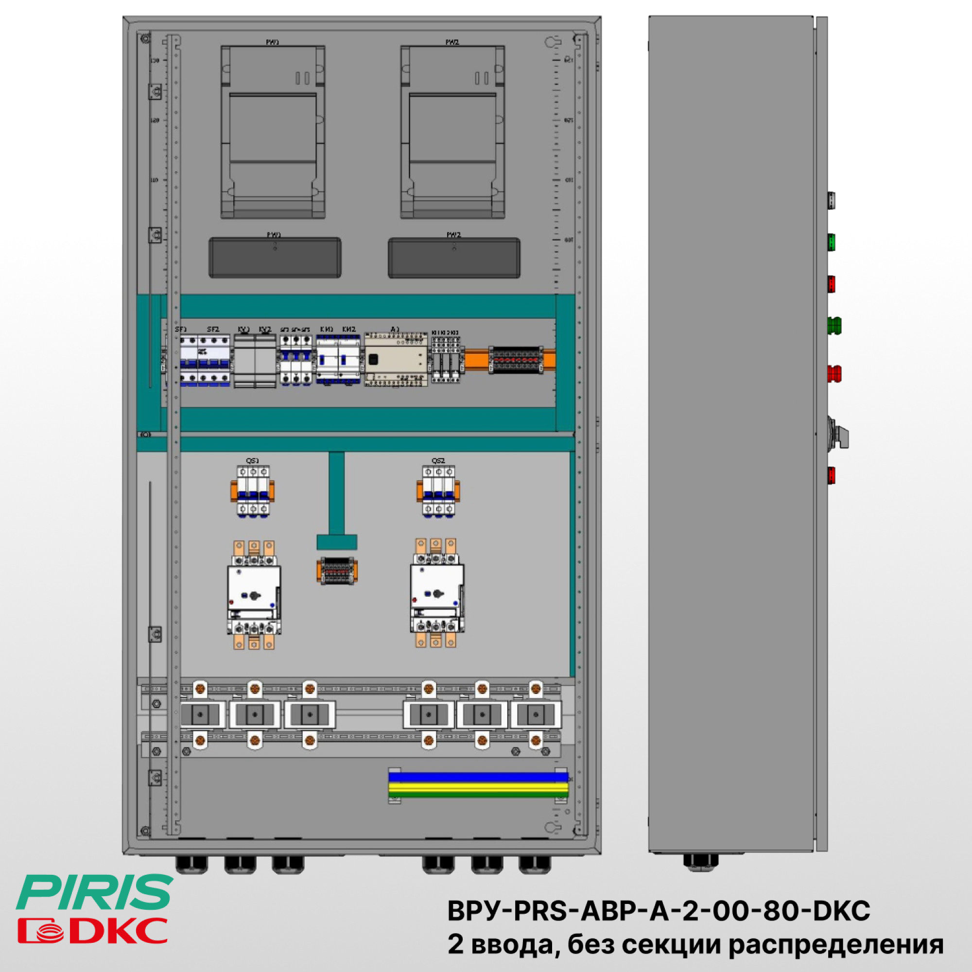 Вводно-распределительное устройство с автоматическим вводом резерва ВРУ-PRS-АВР-А-2-00-80-DKC предназначено для приёма и автоматического распределения питания между двумя независимыми вводами. Щит ВРУ-PRS-АВР-А-2-00-80-DKC обеспечивает надёжное электроснабжение потребителей 1-й категории, где перерыв в подаче электроэнергии недопустим.