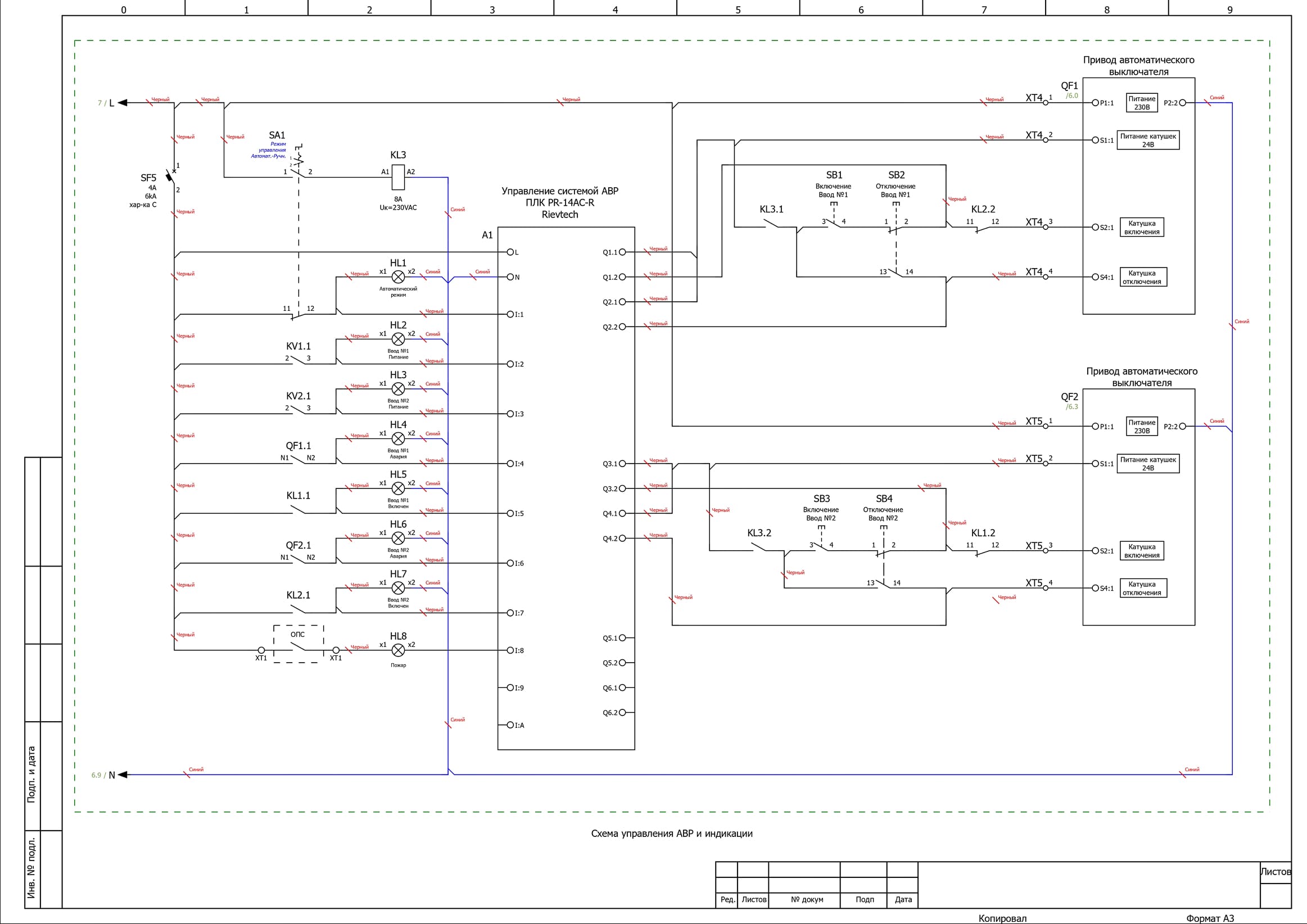 ВРУ-PRS-АВР-А-2-01-100-EKF оснащен системой автоматического ввода резерва. Управление осуществляется автоматическими выключателями в литом корпусе EKF AVERES AV POWER-1/3 100А 35кА совместно с контроллером ПЛК Rievtech PR-14AC-R. Ресурс выходных реле контроллера — до 100 000 коммутационных циклов при номинальной нагрузке (AC-1), что обеспечивает длительную и стабильную работу.