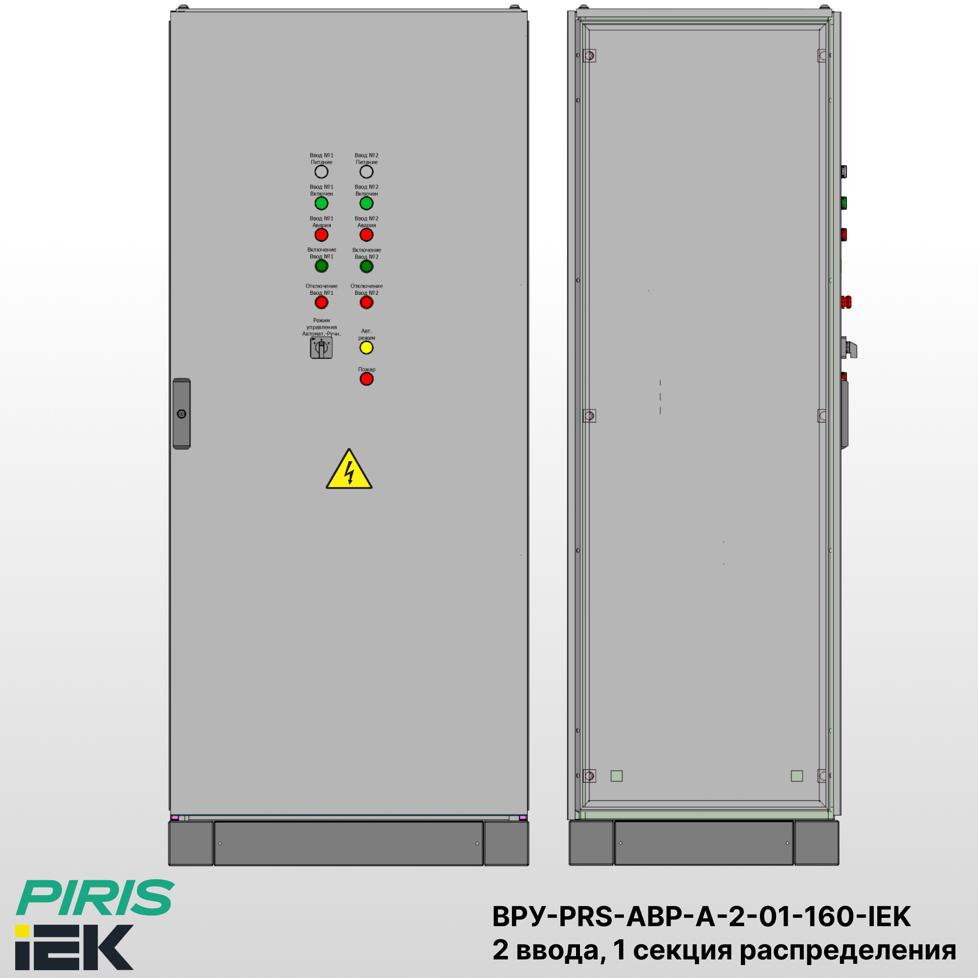 Вводно-распределительное устройство с АВР — ВРУ-PRS-АВР-А-2-01-160-IEK напольного исполнения, из цельносварного корпуса в габаритах 1800×800×600 со степенью защиты IP31, предназначено для ввода и распределения питания силового оборудования 1-й категории электроприёмников, когда перерыв в электроснабжении недопустим.