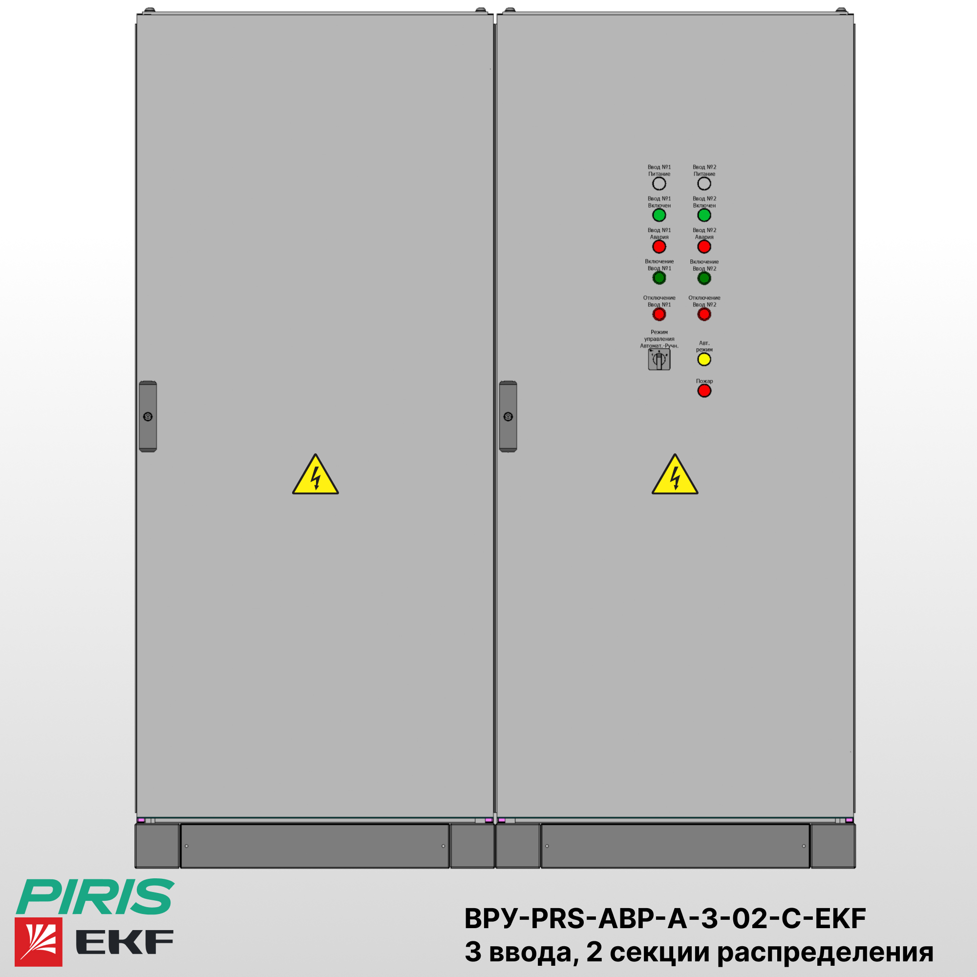 Вводно-распределительное устройство ВРУ-PRS-АВР-А-3-02-С-40-EKF предназначено для приёма, распределения и автоматического переключения питания между тремя источниками — двумя независимыми сетевыми вводами и дизель-генераторной установкой (ДГУ). Система обеспечивает бесперебойное электроснабжение электроприёмников 1-й категории, допускающее кратковременный перерыв только на время переключения между источниками.
