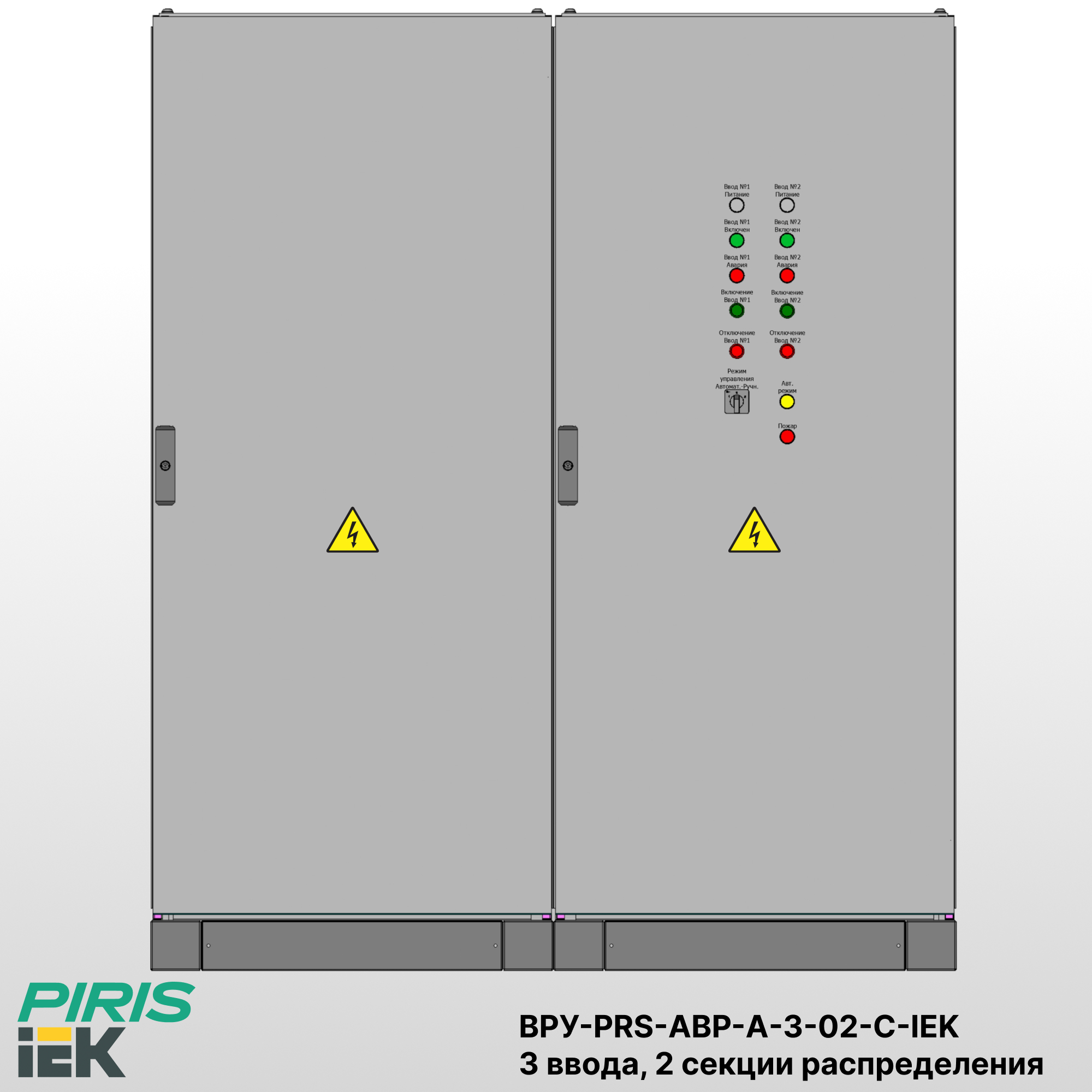 Вводно-распределительное устройство ВРУ-PRS-АВР-А-3-02-С-400-IEK предназначено для приёма, распределения и автоматического переключения питания между тремя источниками — двумя независимыми сетевыми вводами и дизель-генераторной установкой (ДГУ). Система обеспечивает бесперебойное электроснабжение электроприёмников 1-й категории, допускающее кратковременный перерыв только на время переключения между источниками.