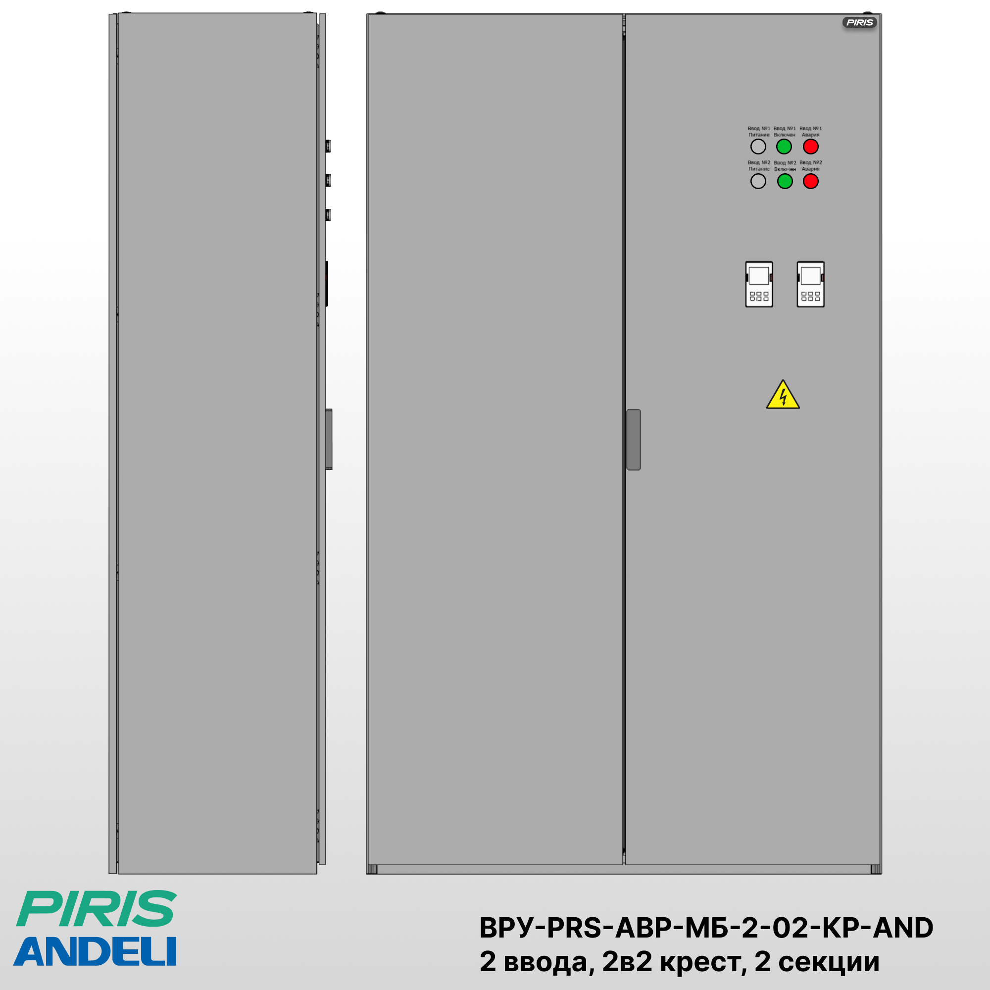 Вводно-распределительное устройство ВРУ-PRS-АВР-МБ-2-02-КР-125-AND предназначено для автоматического ввода резерва и распределения питания между двумя независимыми вводами по схеме 2в2 крест. Конструкция предусматривает две секции шин с возможностью взаимного резервирования: каждая секция может питаться от любого из вводов при условии электрической и механической блокировки вводных аппаратов.